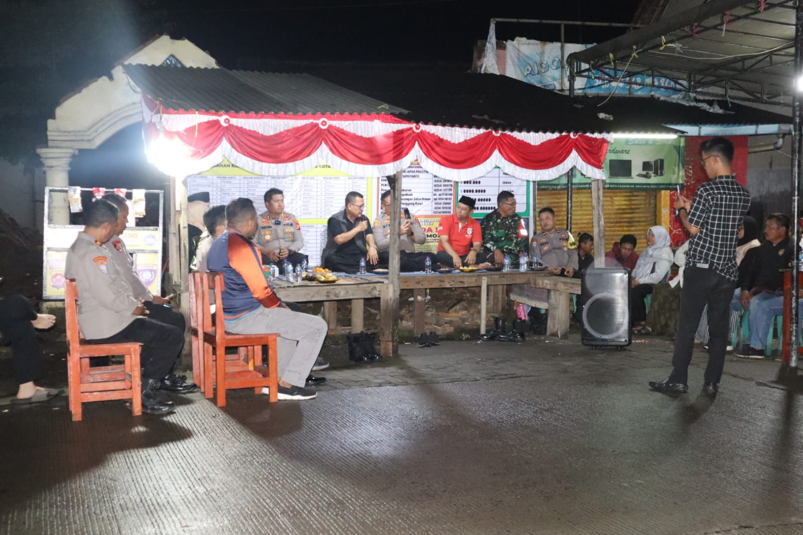 Anggota Polsek cilegon sambangi ronda malam sampaikan pesan kamtibmas jaga keamanan