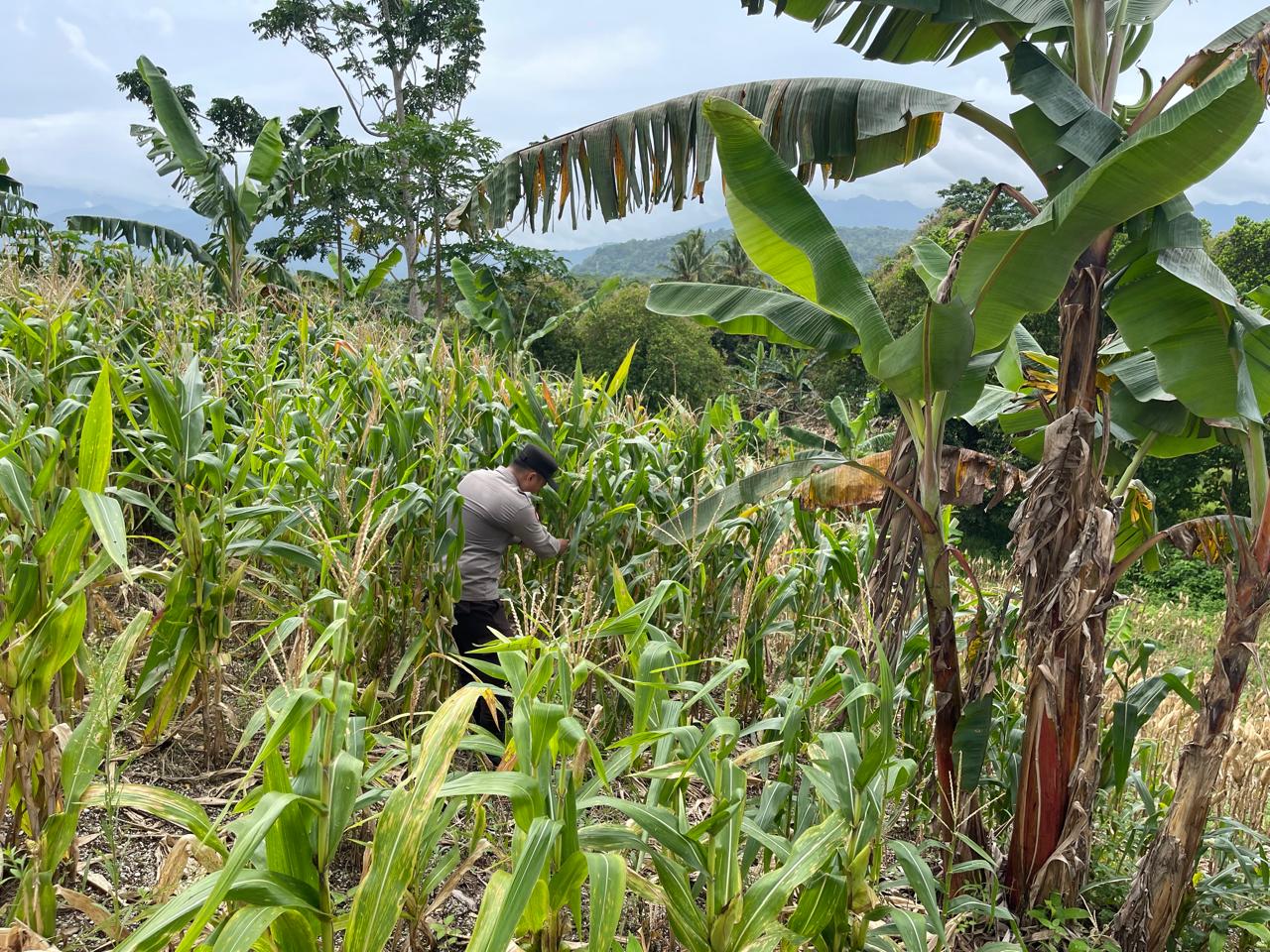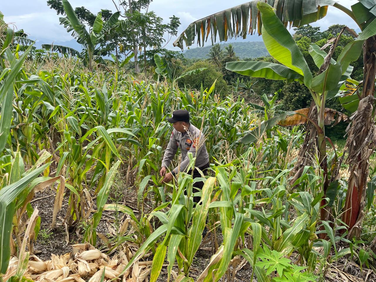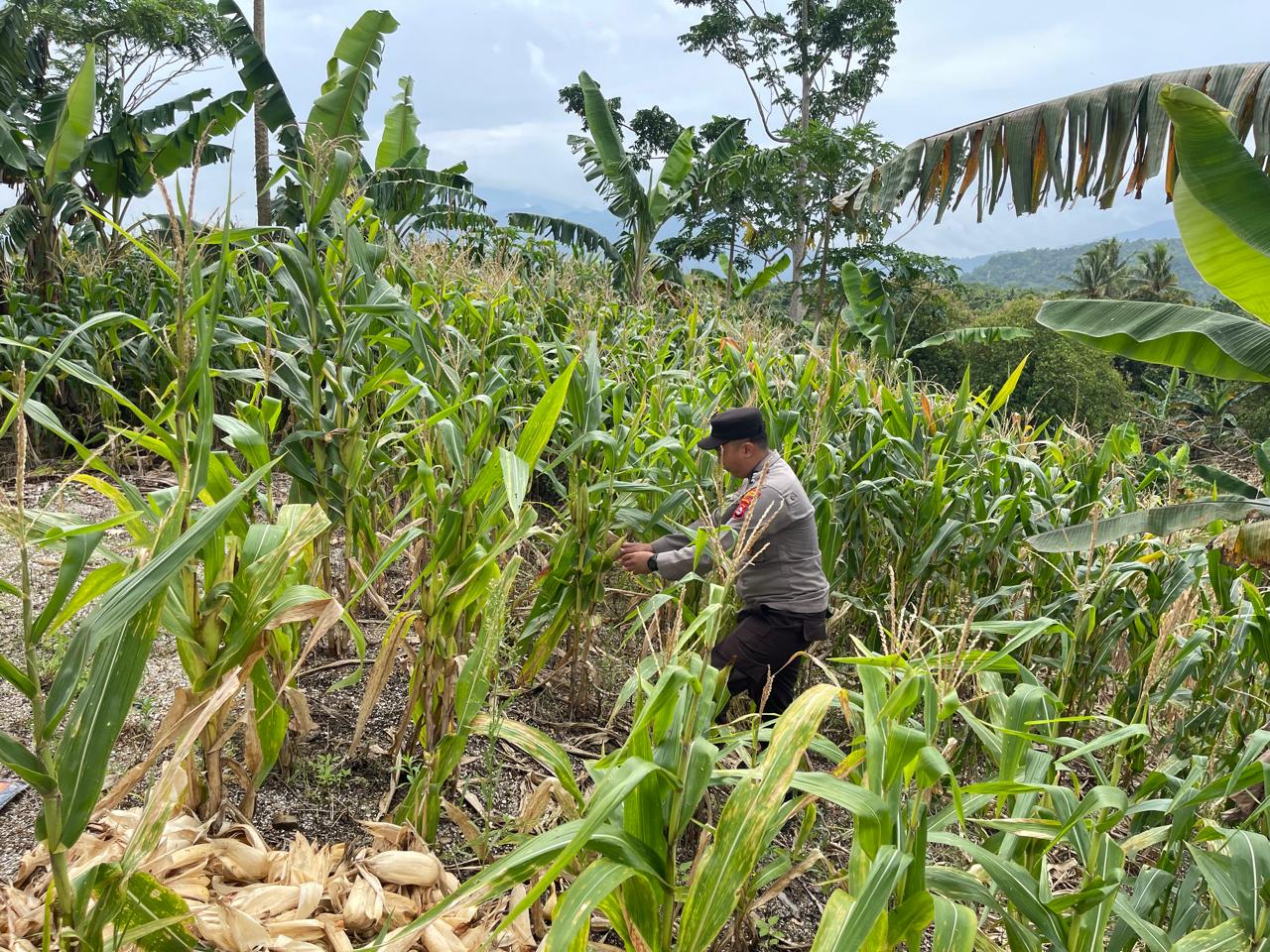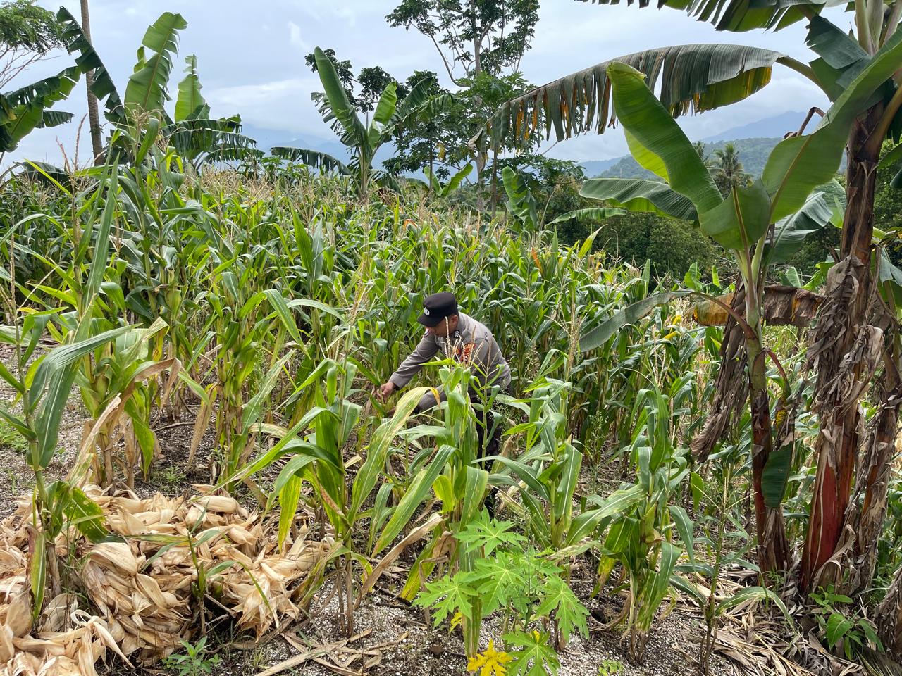 Personel Bhabinkamtibmas Polsek Purwakarta Aipda Nugraha turut serta membantu mengangkat tiang internet yang roboh di lingkungan Kaligandu Kidul, Rabu (tanggal dapat disesuaikan)