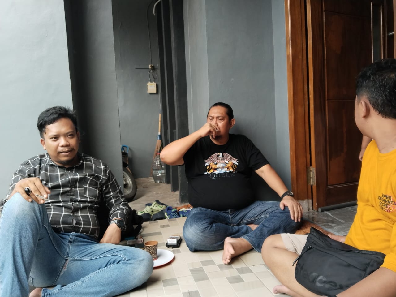 Personil sat intelkam melakukan koordinasi dengan tokoh masyarakat kec. Cinangka kabupaten serang.