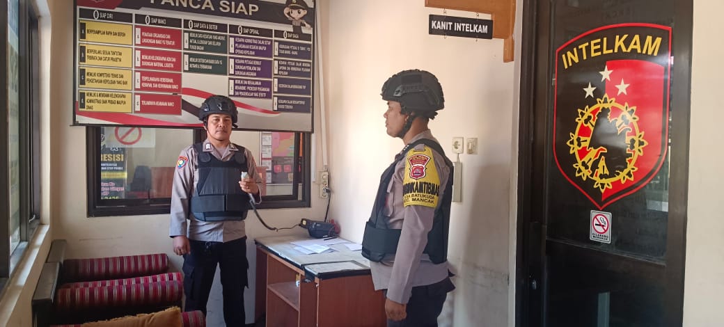 Amankann Markas Personil Polsek Mancak laksanakan Sispam Mako Polsek Mancak Polres Cilegonn.