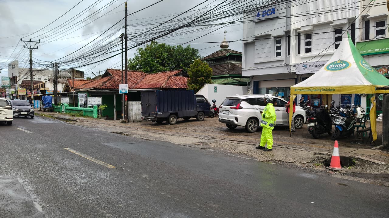 Cuaca Hujan Tak Surutkan Polres Cilegon Atur Arus Lalu Lintas