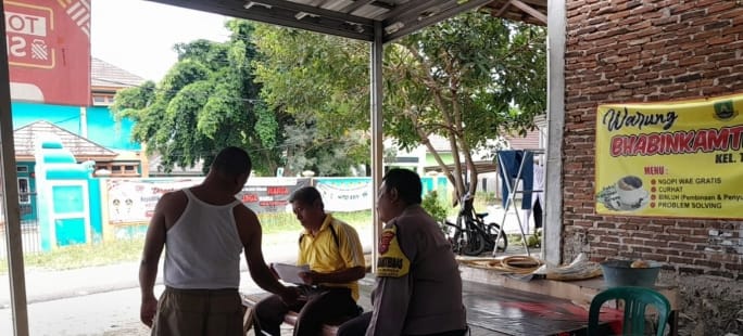 Bhabinkamtibmas Patroli Dialogis ke Warung Kopi Bhabinkamtibmas Jalin Komunikasi bersama warga