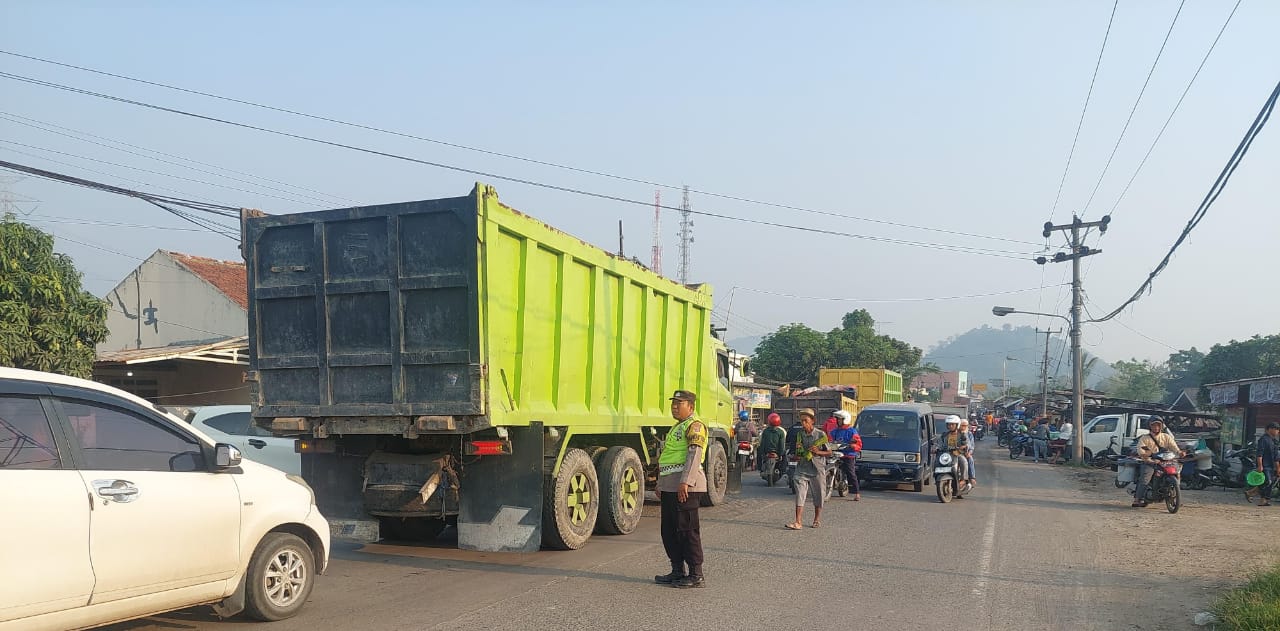 Bhabinkamtibmas Desa Kertasana Bripka Ghery S Strong Poin Atur Lalu-Lintas Dalam Pelayanan Pagi Hari