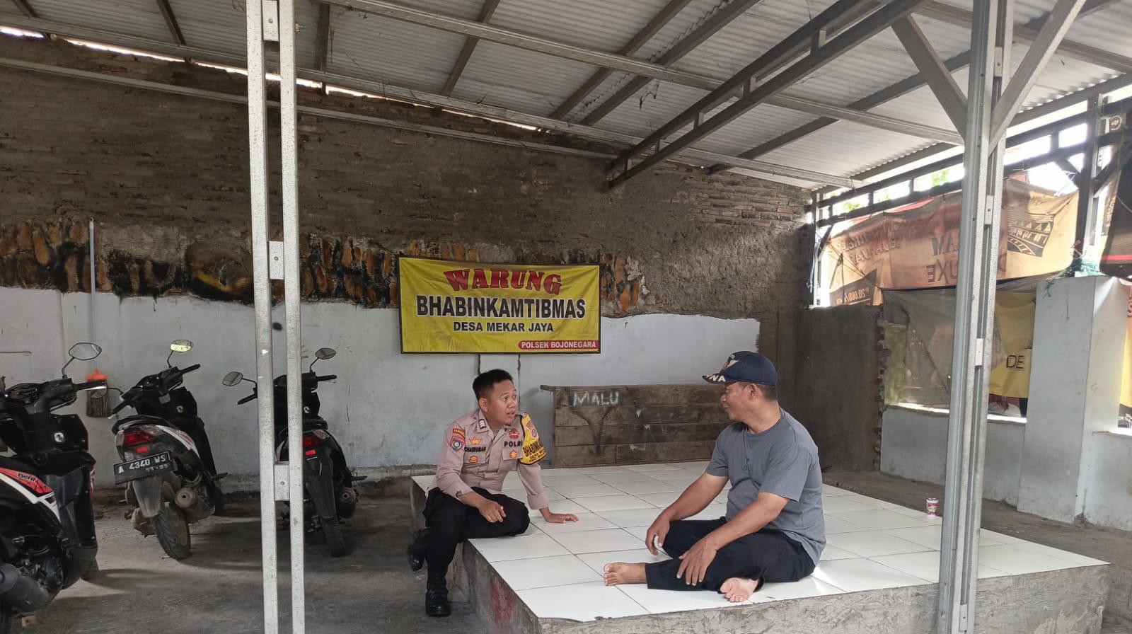 Bincang dengan masyarakat Di Warung Bhabin, Bagus Wibi dan Briptu Alang Bhabinkamtibmas Edukasi Kamtibmas