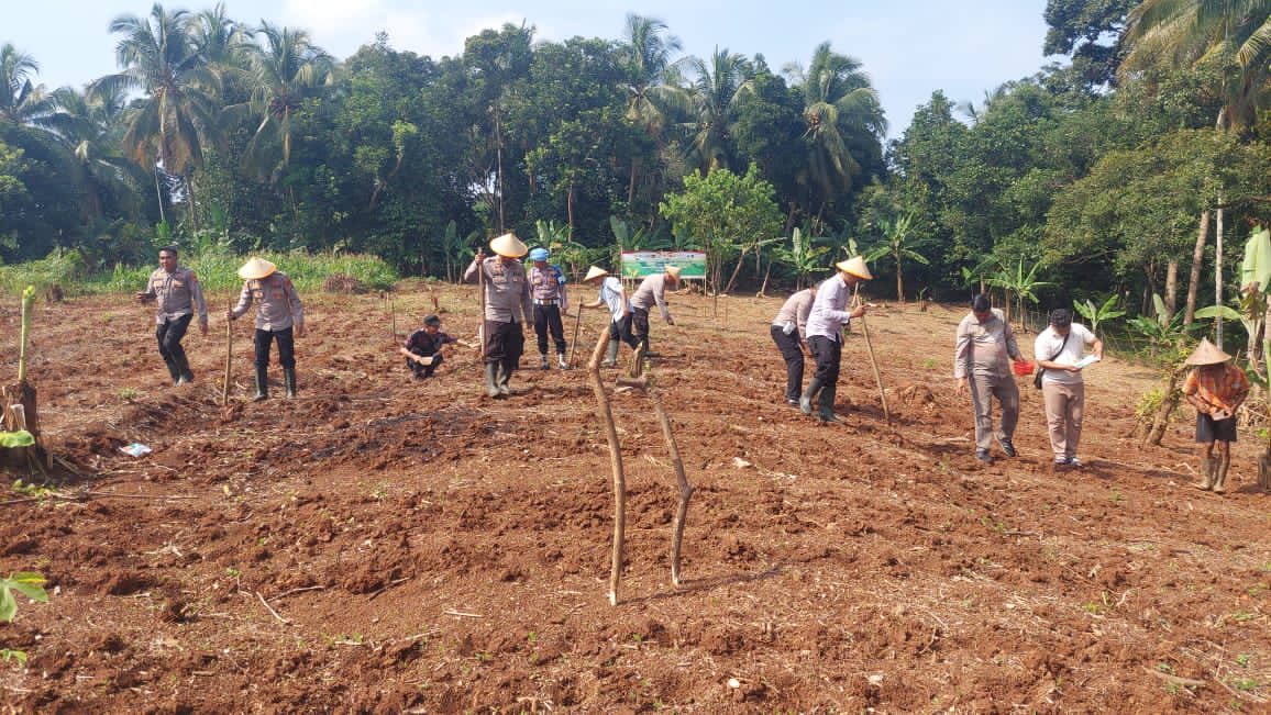 Penanaman Jagung serentak Kuartal IV Seluruh Indonesia di lahan milik kelompok tani Bpk. Maman Rt. 01/01 Kp. Macute Kel. Angsana Kec. Mancak-Serang daerah hukum Polres Cilegon.