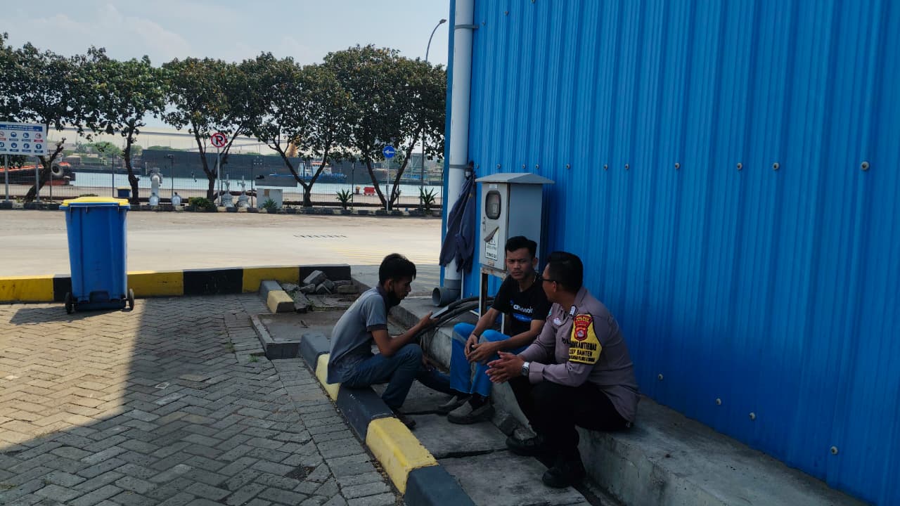 Jalin Silaturahmi, Bhabinkamtibmas Pelabuhan Polsek Kawasan Pelabuhan Banten berbincang dengan Buruh Pelabuhan