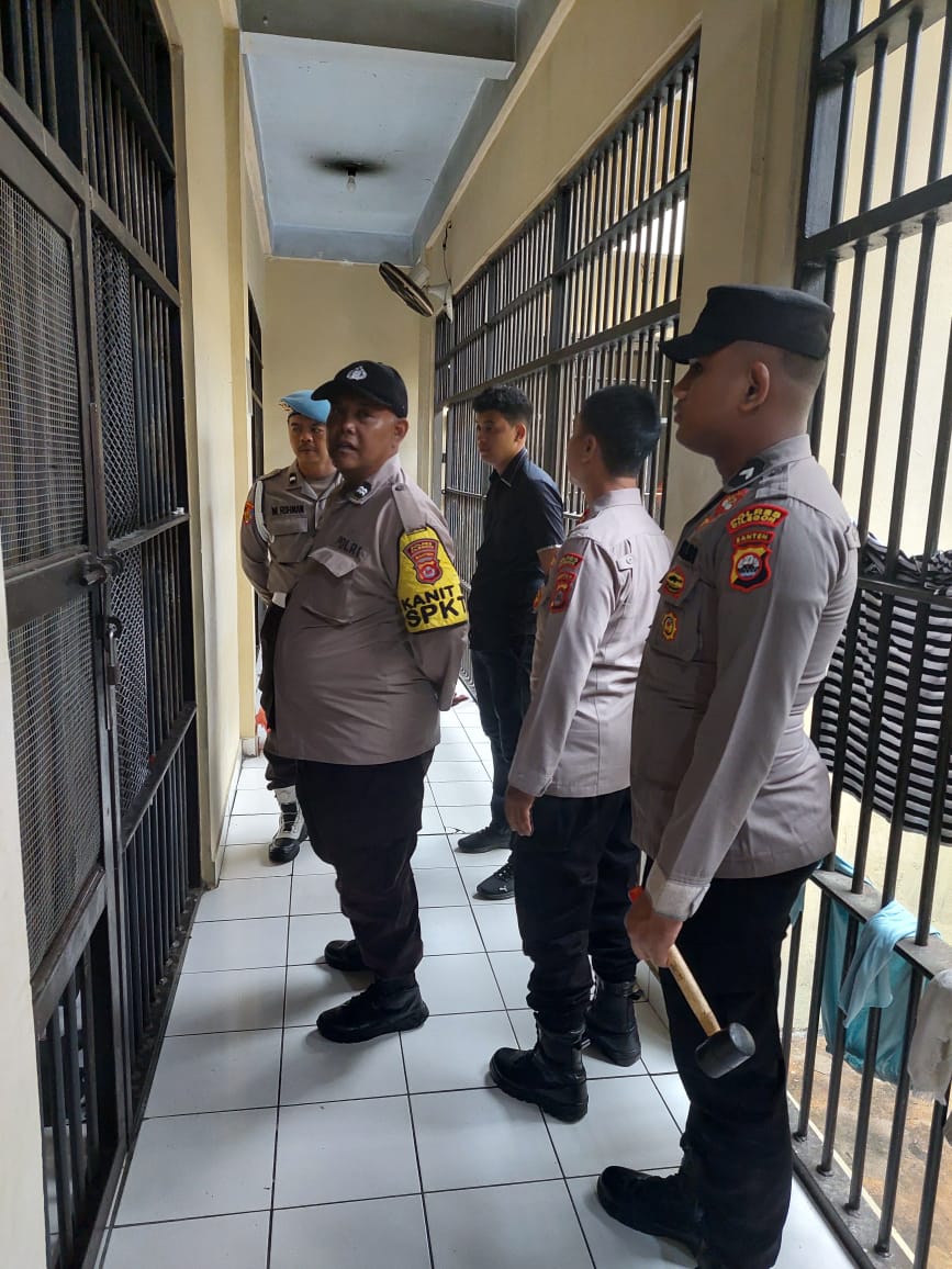 Cilegon,Personel piket Satreskrim Polres Cilegon Polda Banten beserta piket fungsi lainya melakukan pengecekan jumlah narapidana dan ruang di setiap kamar rutan di polres cilegon. Kegiatan ini bertujuan agar terus memonitor keadaan para narapidana di rutan polres cilegon dan menghindari hal-hal yang tidak diinginkan serta mengecek kekuatan setiap ruangan di tahun 2025. Minggu (27/10/2025).