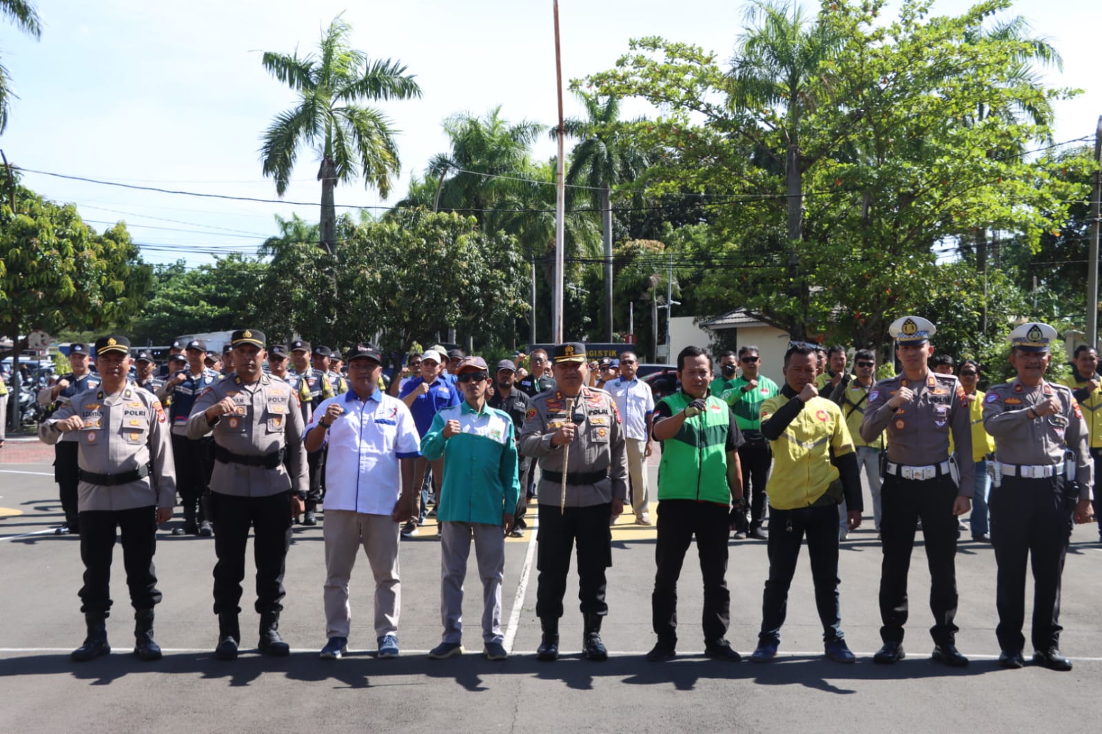 Kegiatan yang berlangsung di halaman Mapolres Cilegon tersebut dipimpin langsung oleh Kapolres Cilegon, dan diikuti oleh para pejabat utama Polres, perwakilan serikat pekerja, serta perwakilan komunitas ojol dari berbagai wilayah.