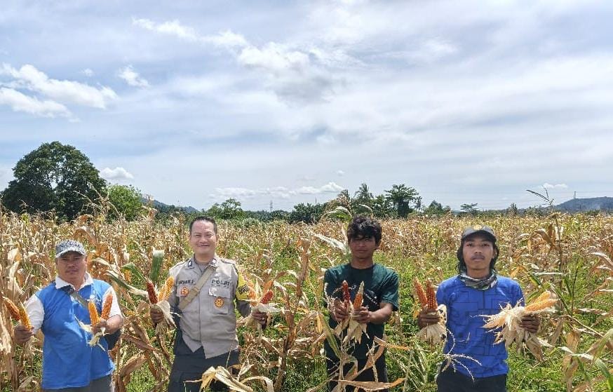 Kegiatan Bersama Poktan Personel Polsek Anyar Melaksanakan Panen Jagung