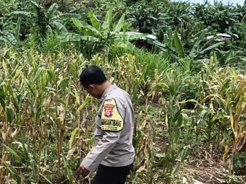 Rawat tanaman jagung bhabinkamtibmas Polsek Pulomerak bersama Poktan Kebun Pisang