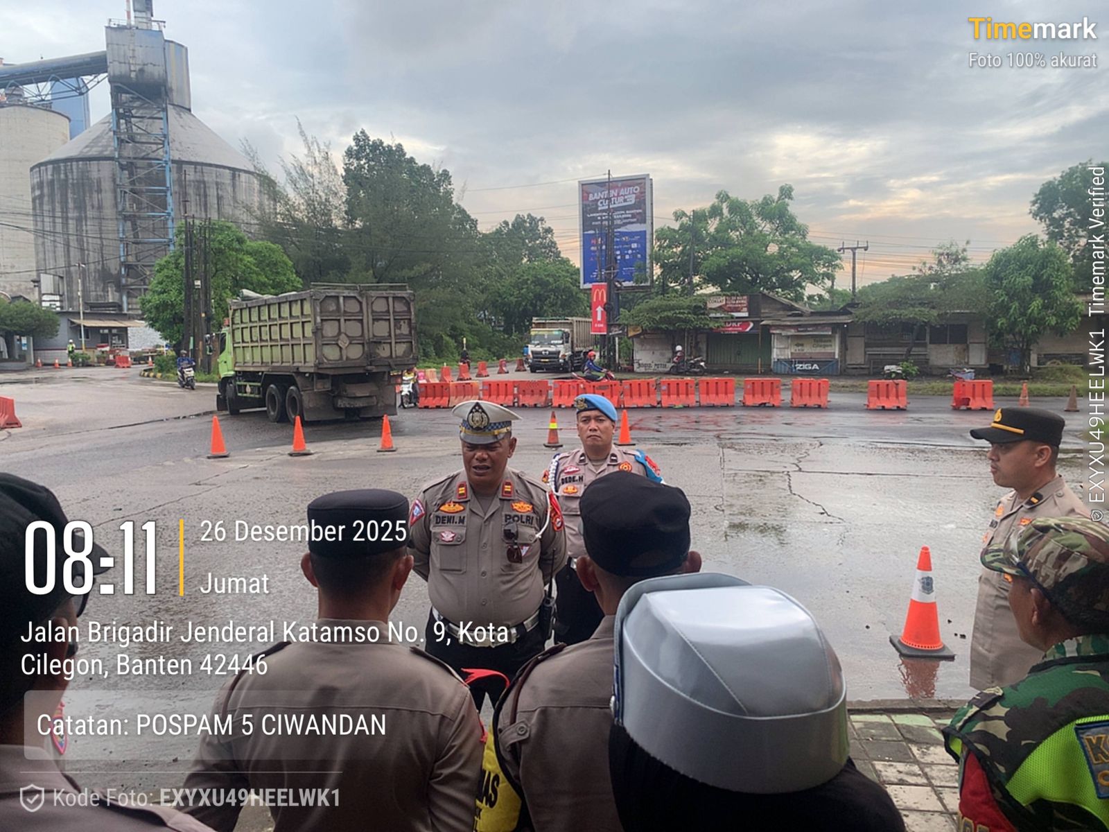 Cilegon - Personil Pospam 5 Ciwandan Polsek Ciwandan Polres Cilegon Polda Banten melaksanakan Apel Kesiapan Pelaksanaan kegiatan pengamanan Arus Lalu-lintas Wisata Dalan Operasi Lilin Maung 2025, Jum'at (26/12/2025).