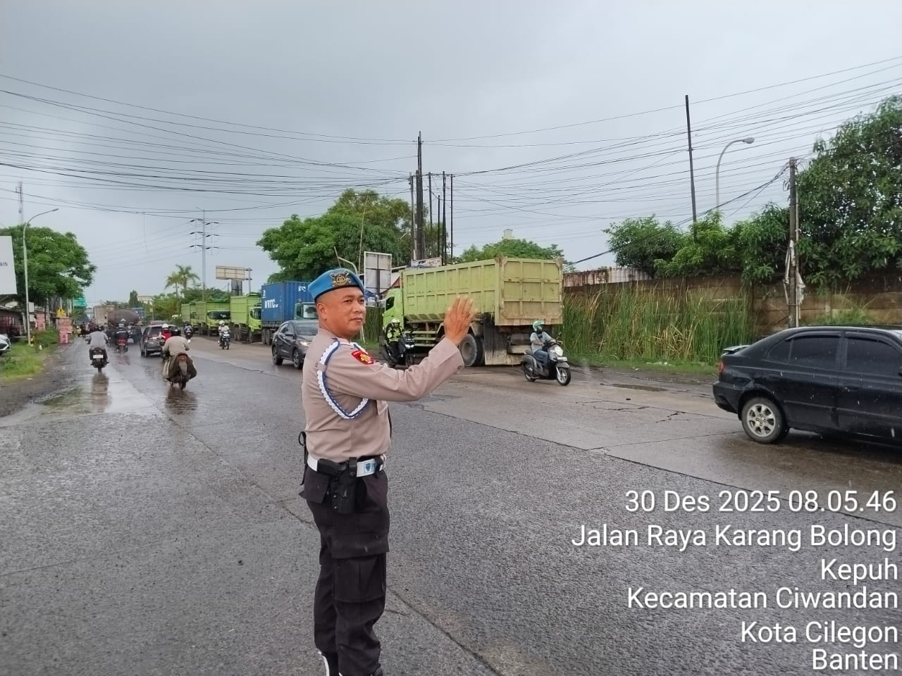Cilegon - Personil Pos Pam 5 Polsek Ciwandan Polres Cilegon Polda Banten melaksanakan kegiatan pengaturan lalu-lintas dalam pengamanan Libur Natal 2025 Dan Tahun Baru 2026. Selasa (30/12/2025).