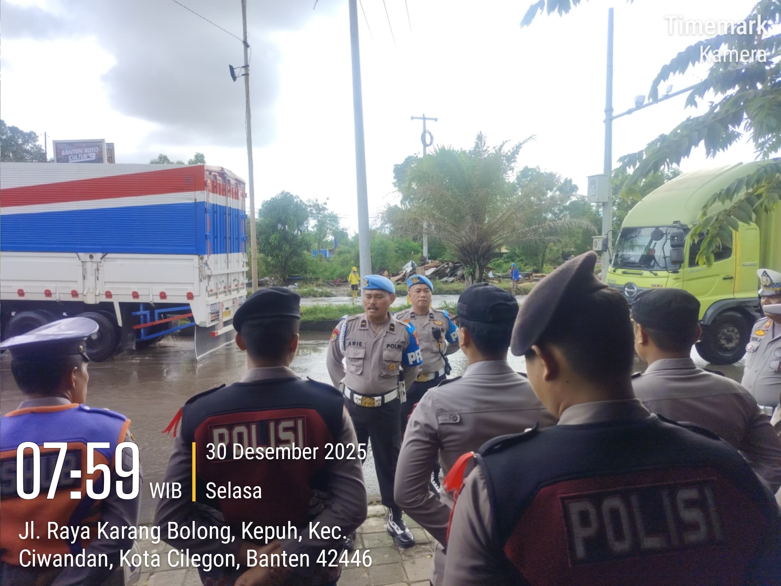 Cilegon - Personil Pospam 5 Ciwandan Polsek Ciwandan Polres Cilegon Polda Banten melaksanakan Apel Kesiapan Pelaksanaan kegiatan pengamanan Arus Lalu-lintas Wisata Dalan Operasi Lilin Maung 2025, Selasa (30/12/2025).