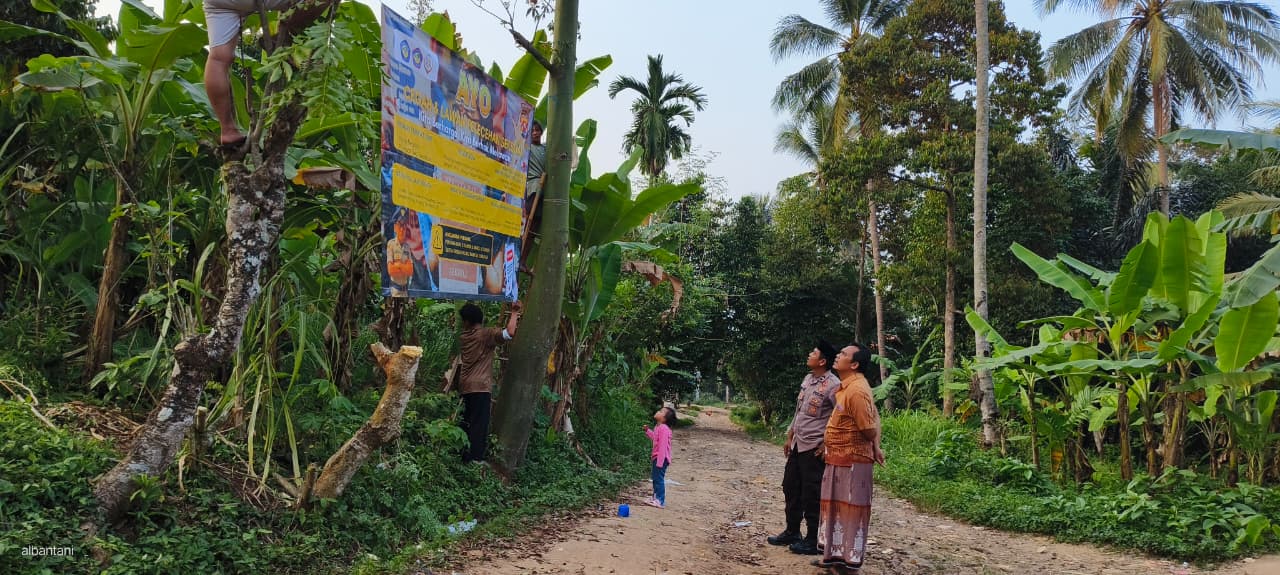 Bhabinkamtibmas Polsek Mancak Polres Cilegon Sambang melakukan giat Pemasangan sepanduk Cegah Dan Lawan Pelecehan Seksual Desa Angsana kec.Mancak