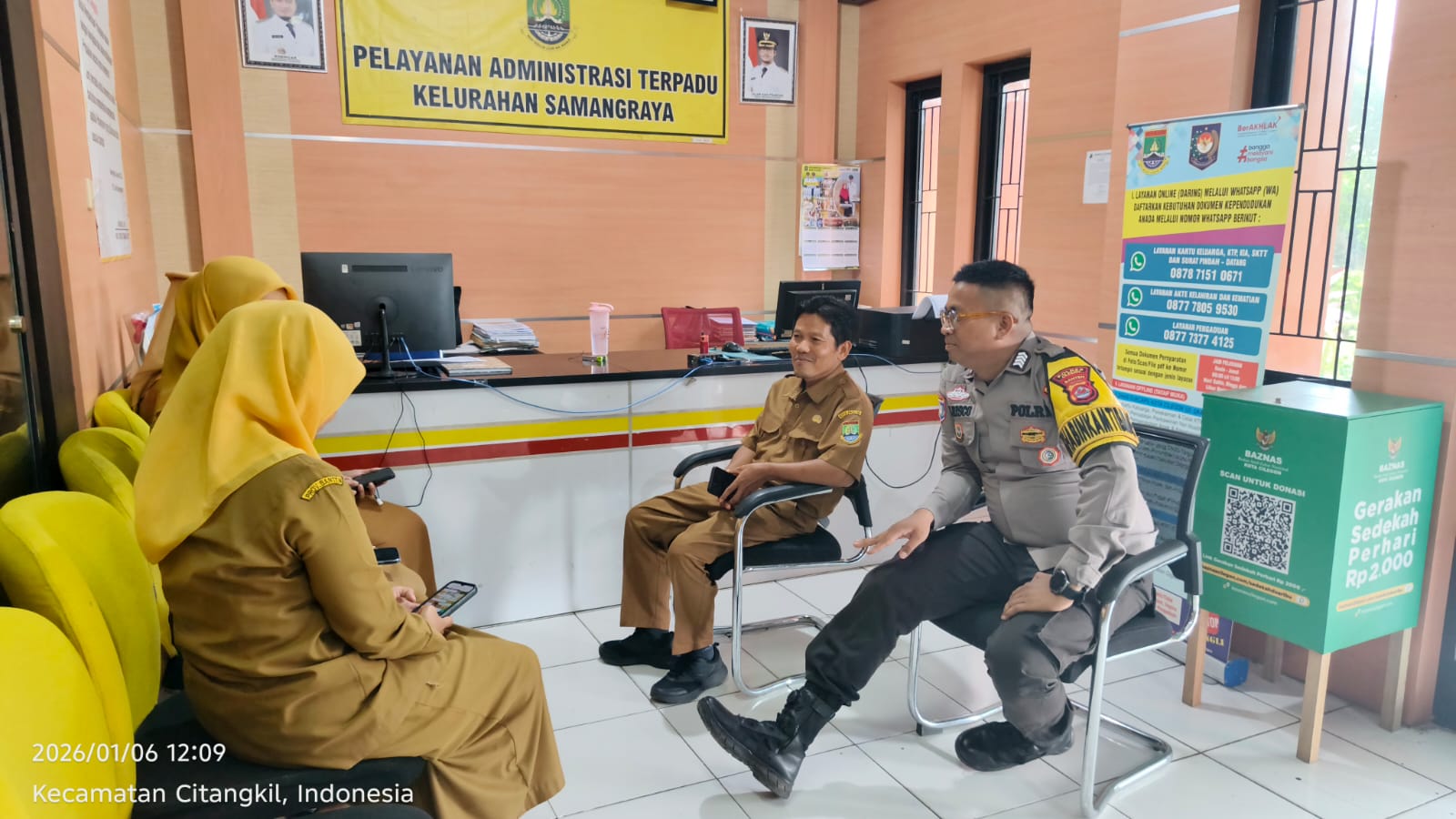 Cilegon - Bhabinkamtibmas Kelurahan Samangraya Polsek Ciwandan Polres Cilegon Polda Banten BRIPKA Marisco melaksanakan kegiatan sambang Dialogis Dan silaturahmi Bersama Lurah Dan Staff Kelurahan Samangraya Kecamatan Citangkil Kota Cilegon, Selasa (06/01/2026).