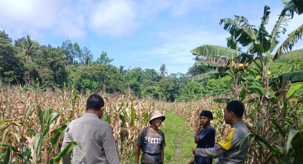 Dalam kegiatan monitoring ini, Bhabinkamtibmas meninjau langsung kondisi lahan jagung.