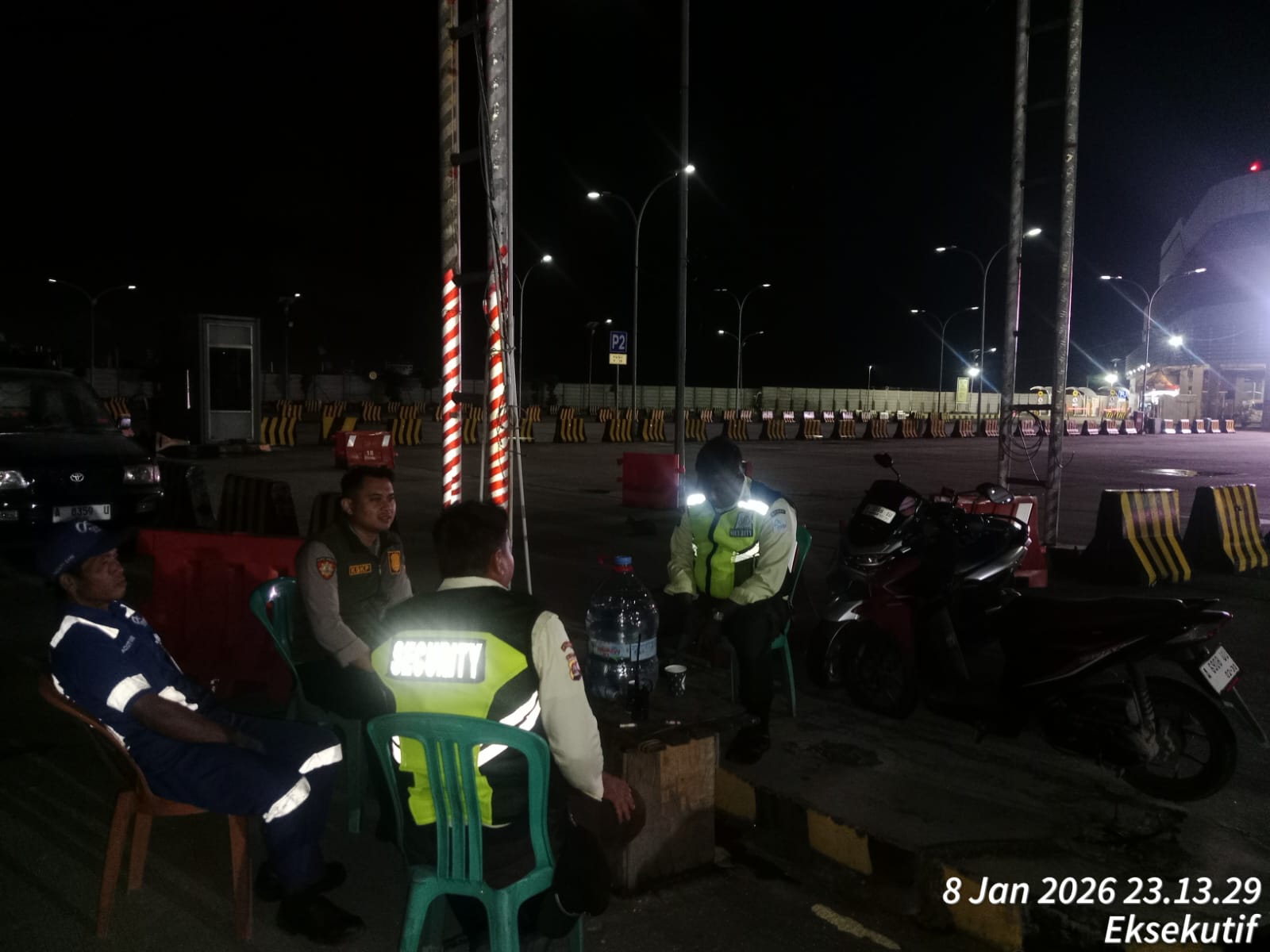 \Cilegon - Personel Polsek Kskp Merak Polres Cilegon Polda Banten melaksanakan sambang dan patroli kawasan pelabuhan merak dalam rangka menjaga Harkamtibmas di Kawasan Pelabuhan Merak, Jumat (09/01/2026).