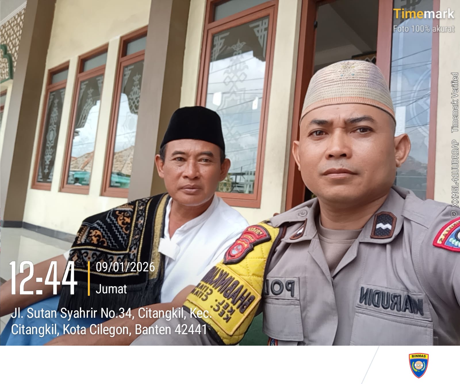 Cilegon - Dalam Rangka Implementasi Program Kapolda Banten Yaitu Sholat Jum’at Keliling Dan Berjama’ah Serta Memakmurkan Masjid Bhabinkamtibmas Polsek Ciwandan Polres Cilegon Polda Banten Sholat Berjama’ah dan Bersilaturahmi Bersama masyarakat sebagai upaya meningkatkan Ukhuwah Islamiyah dalam menjalin silaturahmi dan membangun komunikasi yang baik, Jum'at (09/01/2026).