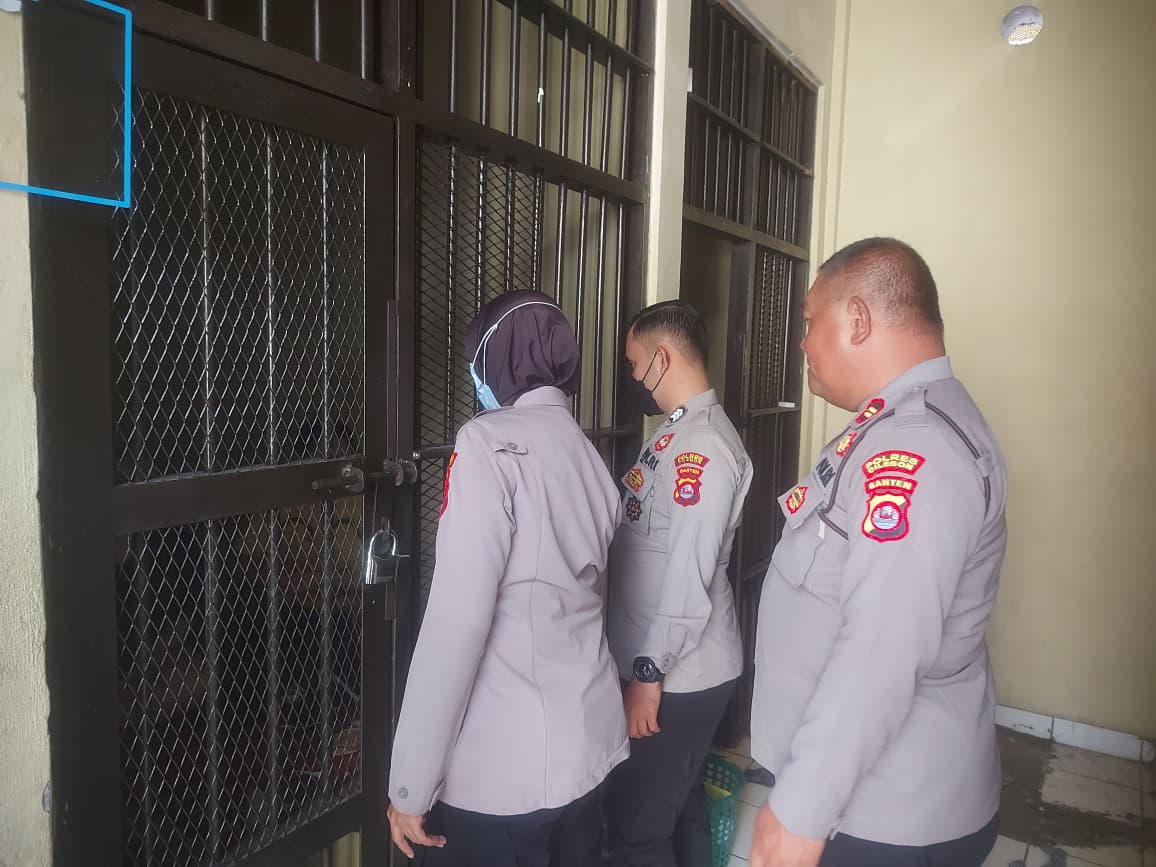 personel seksi pegawasan Polres Cilegon memeriksa Kondisi di Dalam Rutan Polres Cilegon.