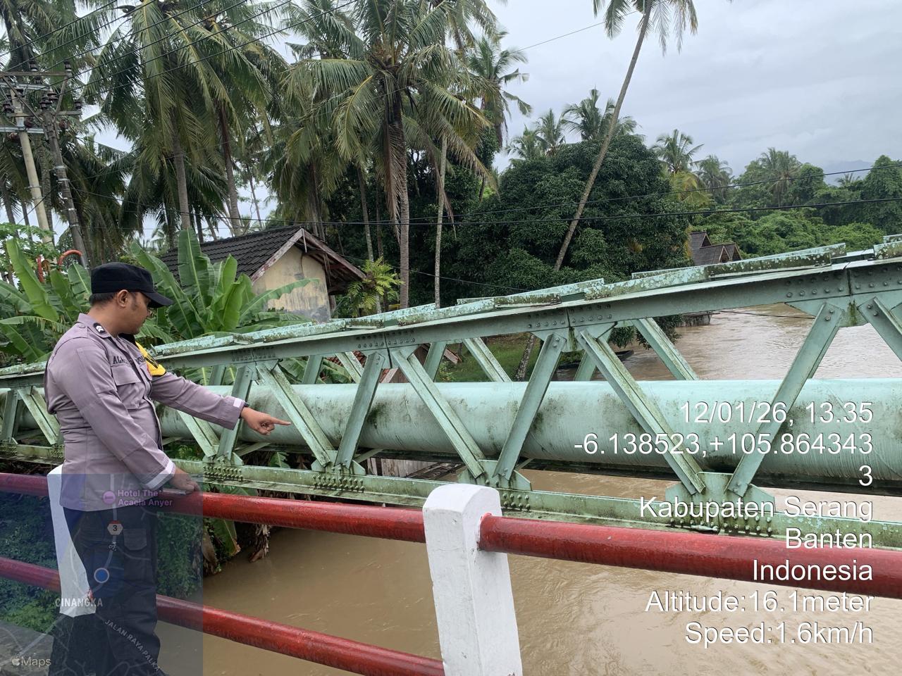 Piket Polsek Cinangka secara rutin melakukan pengecekan kondisi sungai dan berkoordinasi dengan pihak terkait untuk memantau perkembangan debit air. Pemantauan ini juga melibatkan partisipasi aktif dari masyarakat setempat.