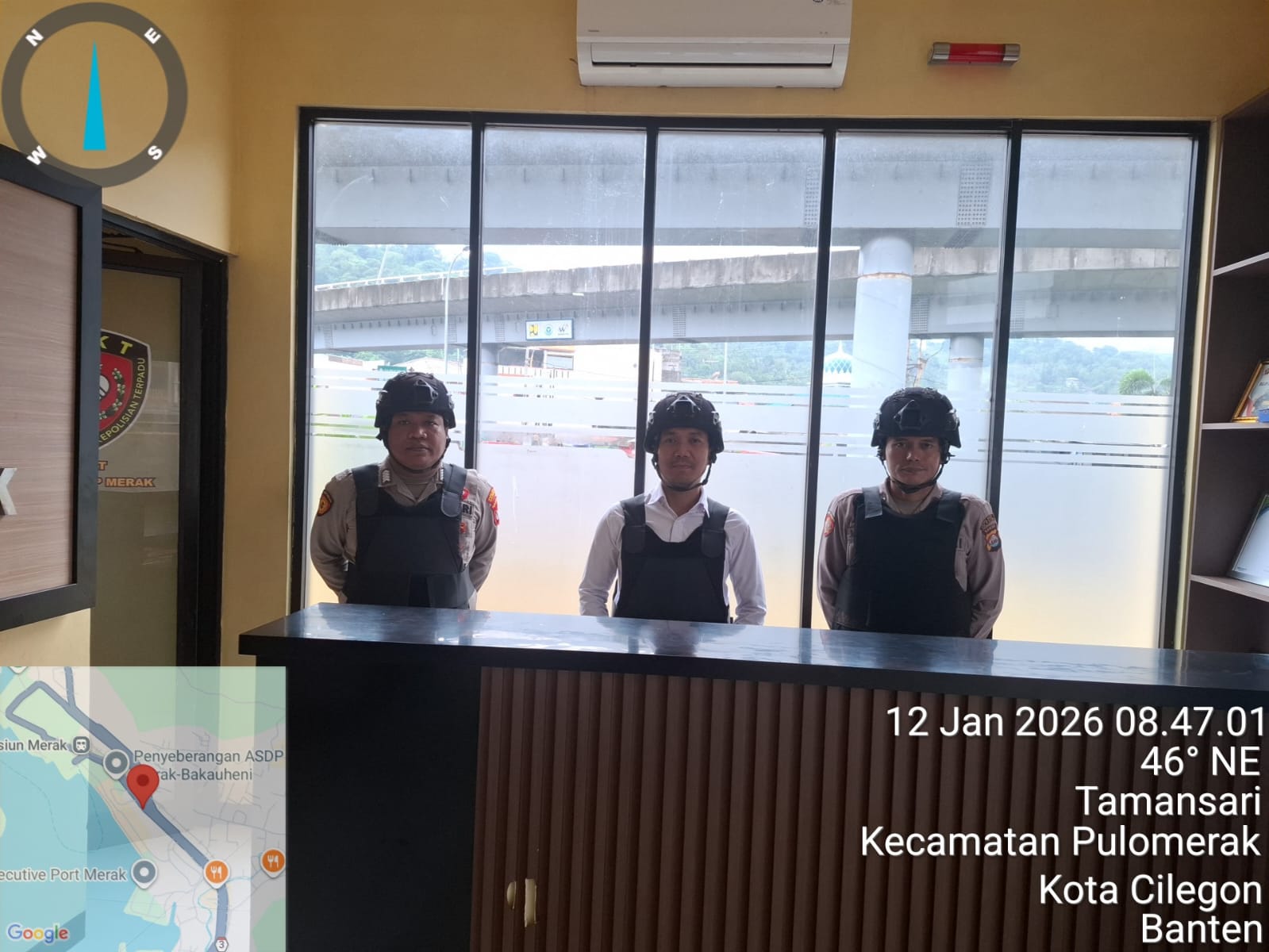 Cilegon - Personel piket jaga Polsek Kskp Merak Polres Cilgon Polda Banten melaksanakan siaga 1 Polsek pelaksanaan Sispam Mako oleh piket siaga dipimpin oleh Kspk Polsek Kskpy Merak Polres Cilegon Polda Banten, Senin (12/01/2026).