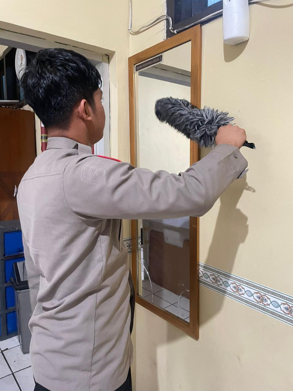 Anggota Bag SDM Polres Cilegon, tuggas rutin dalam untuk membersihkan ruangan kerja selalu di laksanakan.