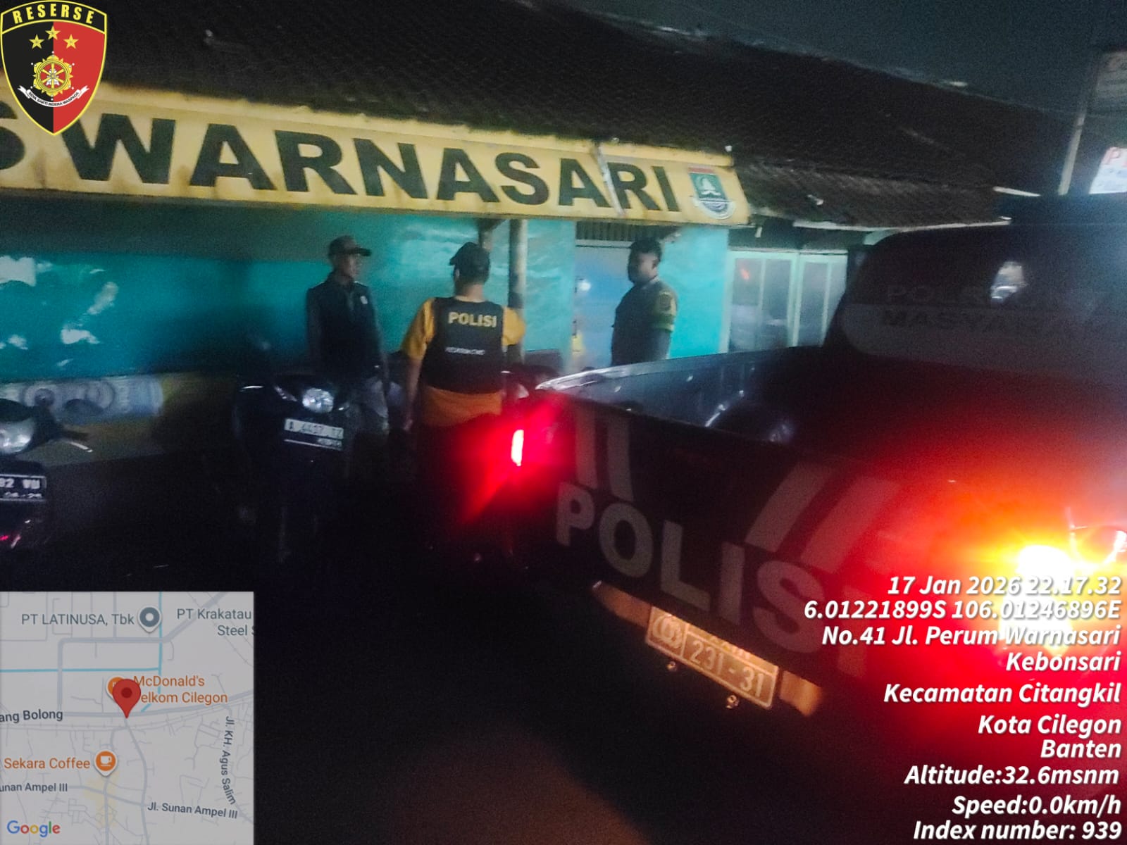 Cilegon - Polsek Ciwandan Polres Cilegon Polda Banten kembali menunjukkan komitmennya dalam menciptakan keamanan dan ketertiban masyarakat (kamtibmas) yang kondusif melalui Kegiatan Patroli Malam, Kegiatan ini dilakukan secara rutin dengan berkeliling di daerah hukum Polsek Ciwandan, Minggu (18/01/2026).
