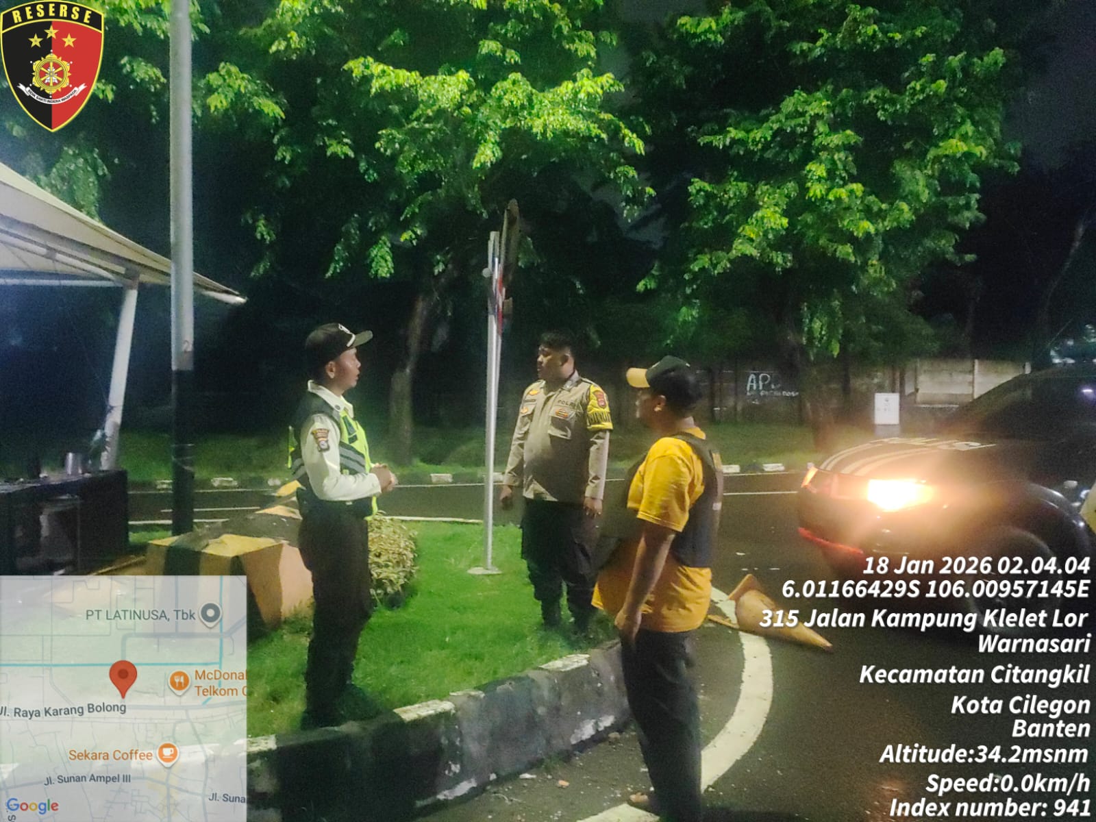 Cilegon - Demi Menjaga keamanan Daerah Hukum Polsek Ciwandan agar tetap kondusif, Personil Polsek Ciwandan Polres Cilegon Polda Banten Melakukan kegiatan sambang kamtibmas Dan Patroli Bersama Security Kedaerah Pergudangan, Minggu (18/01/2026).