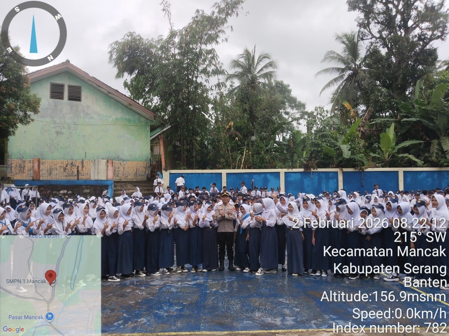 Mancak - Sebagai Pengemban Fungsi Harkamtibmas, Bhabinkamtibmas melaksanakan Kegiatan Pembina Upacara dan Silatuhrami SMPN 1 Mancak dalam rangka Program Quick Wins Presisi Kapolri dan Program Commander Wish Kapolres Cilegon "TRENDING"*. MINGGU, (02/02/2026).