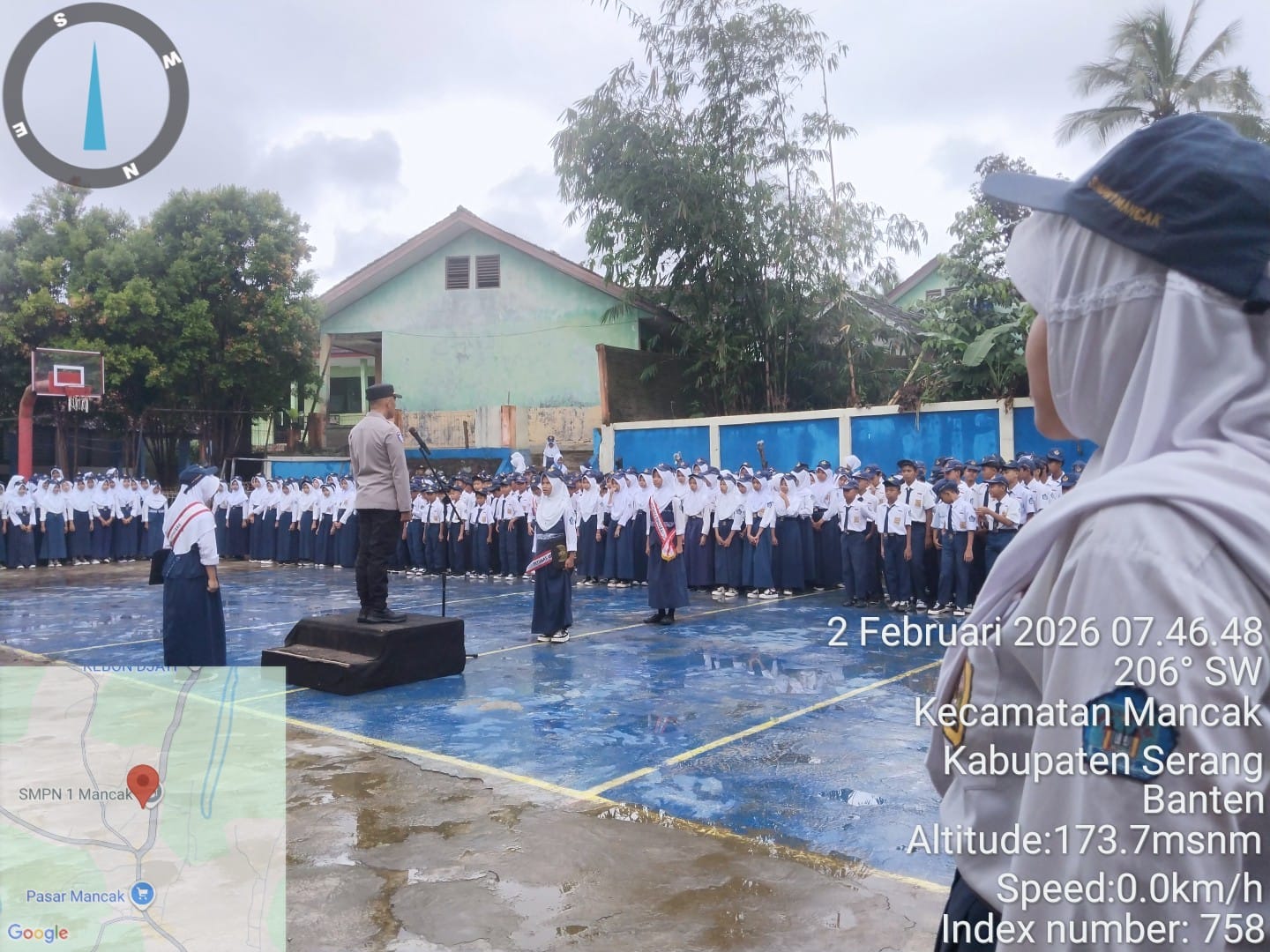 Mancak - Sebagai Pengemban Fungsi Harkamtibmas, Bhabinkamtibmas melaksanakan Kegiatan Pembina Upacara dan Silatuhrami SMPN 1 Mancak dalam rangka Program Quick Wins Presisi Kapolri dan Program Commander Wish Kapolres Cilegon "TRENDING"*. MINGGU, (02/02/2026).