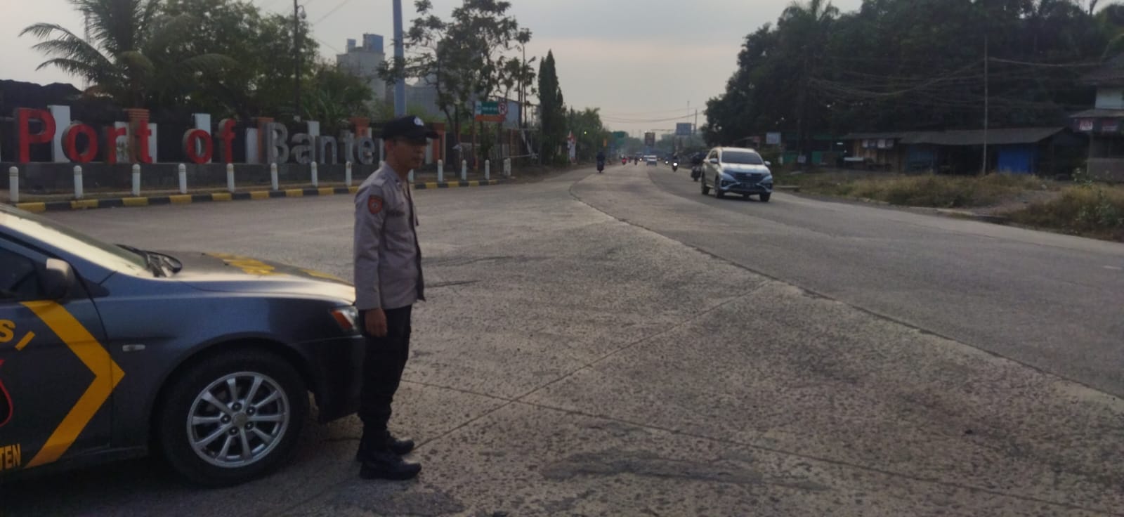 Kapolres Cilegon AKBP Martua Raja Taripar Laut Silitonga Melalui Kapolsek Kskp Banten Polres Cilegon AKP Fredo Leonard menyampaikan Laksanakan Pengamanan Sesuai plotinganya lakukan Pengaturan Supaya Arus Lalu Lintas tetap Berjalan lancar dan Pastikan tidak ada hambatan.