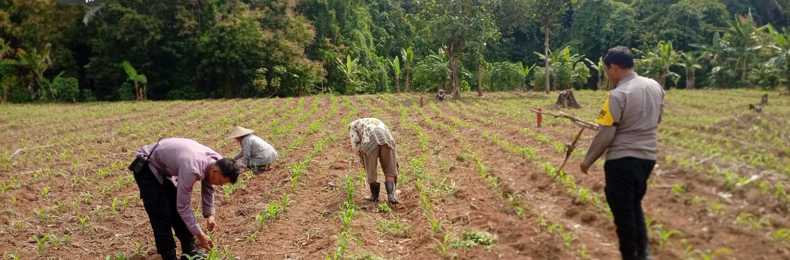Dalam kegiatan monitoring ini, Bhabinkamtibmas meninjau langsung kondisi lahan jagung.