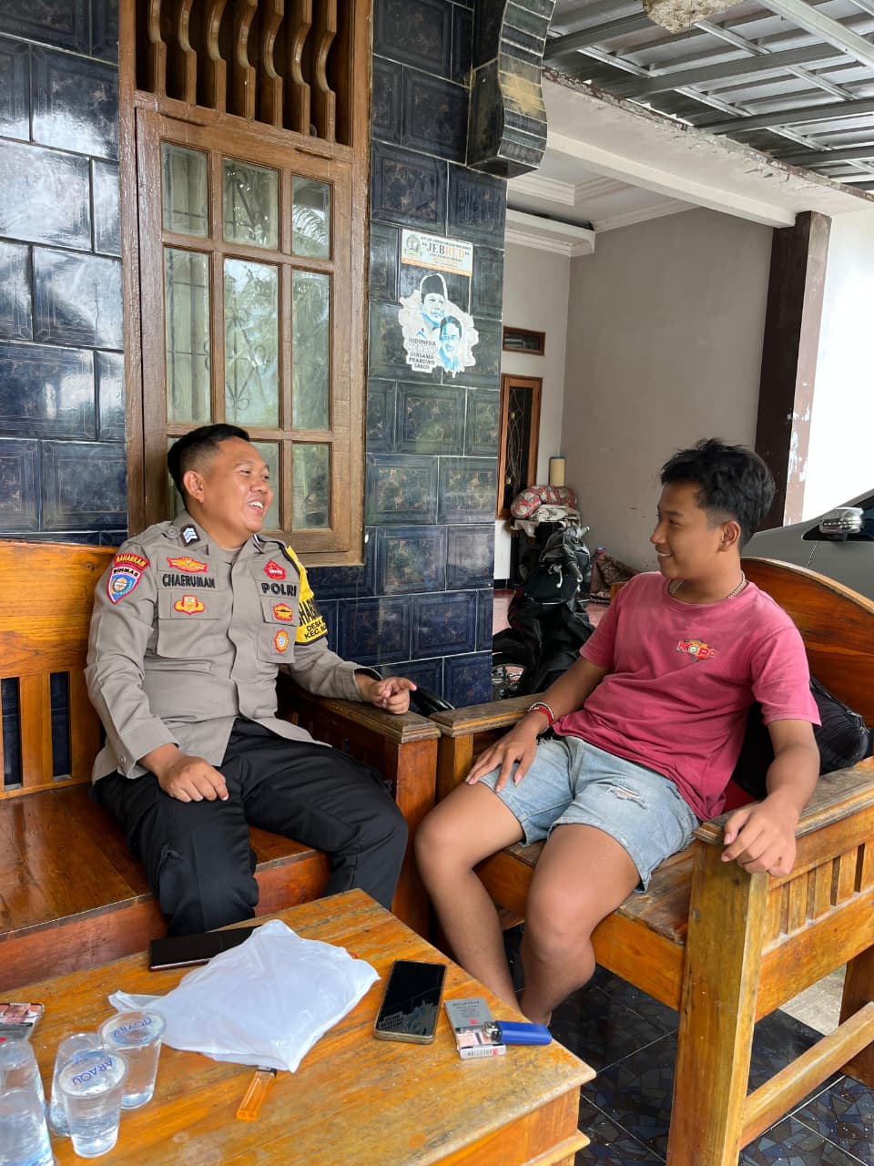Cilegon ~ Bhabinkamtibmas Polsek Bojonegara Polres Cilegon Polda Banten Sambang dan silaturahmi dengan masyarakat merupakan salah satu tugas seorang bhabinkamtibmas untuk mengetahui situasi Kamtibmas Desa binaan dalam menjalin silaturahmi dengan Warga Ds Karangkepuh di Warbinling Bhabinkamtibmas, Selasa (17/02/2026). Dialogis dengan Warga yang lagi nongkrong di Warung Bhabinkamtibmas tersebut menyampaikan...