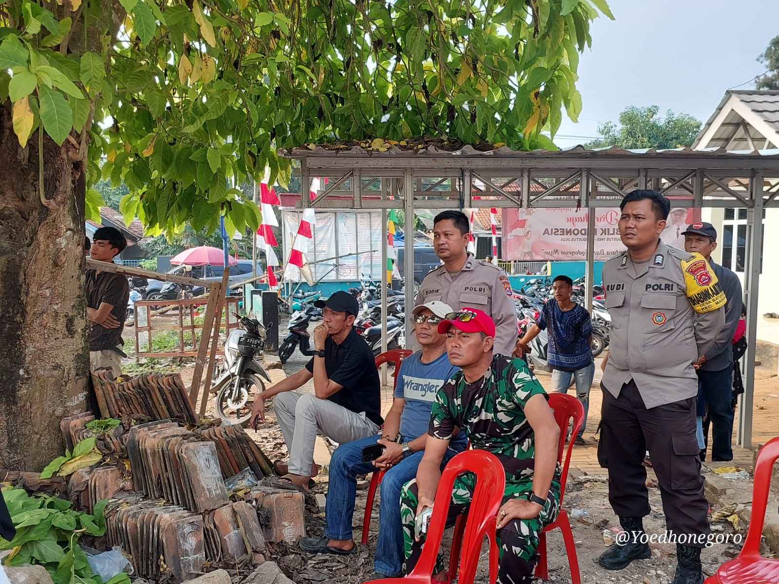 Personil sat intelkam melakukan koordinasi dengan tokoh masyarakat kec. Cinangka kabupaten serang.