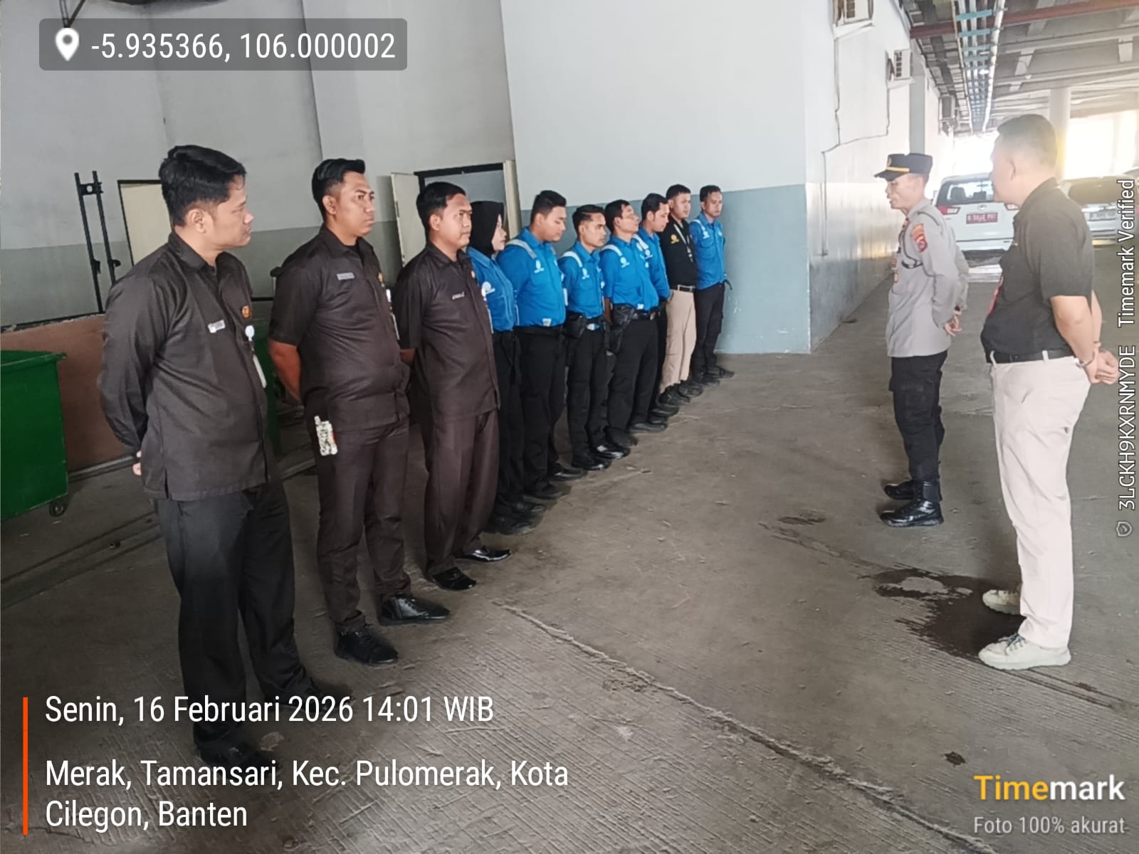 Cilegon - Personil Polsek Kskp Merak Polres Cilegon Polda Banten Laksanakan Pembinaan Scurity Guna Memelihara Harkamtibmas, Sebagai Petugas satuan pengamanan atau security merupakan bagian dari mitra dan kepanjang tanganan tugas Polri yang membantu melaksanakan pengamanan di daerah binaannya, Senin (16/02/2026).Kapolres Cilegon Polda Banten AKBP Martua Raja Taripar Laut Silitonga Melalui...