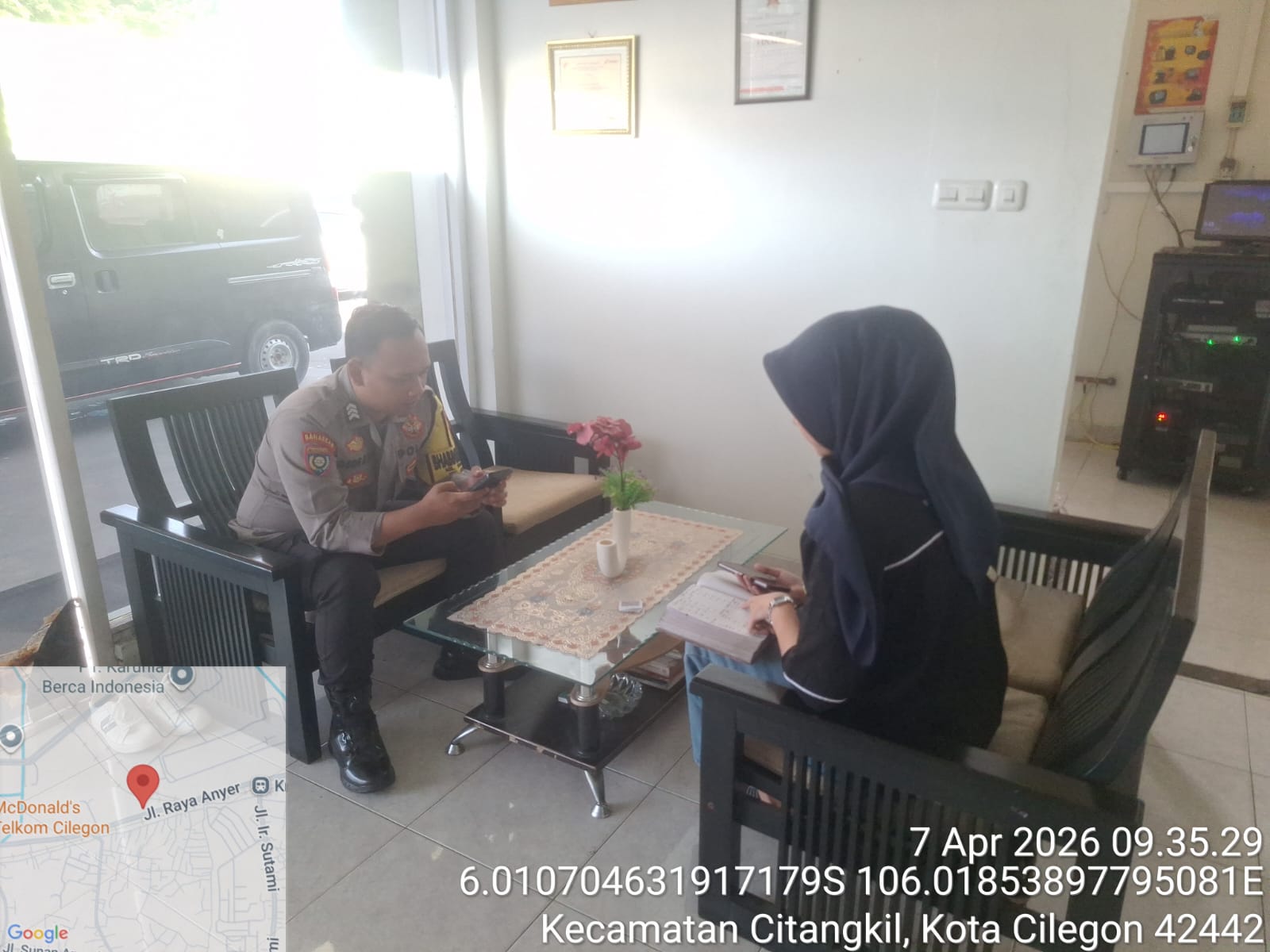Anggota Bhabinkamtibmas Polres Cilegon bersama Kanit Bintibsos melakukan kegiatan penyerahan sarana kontak untuk: 1. Meningkatkan komunikasi: Meningkatkan komunikasi antara Polri dan masyarakat. 2. Mempermudah pelaporan: Mempermudah pelaporan kejadian at