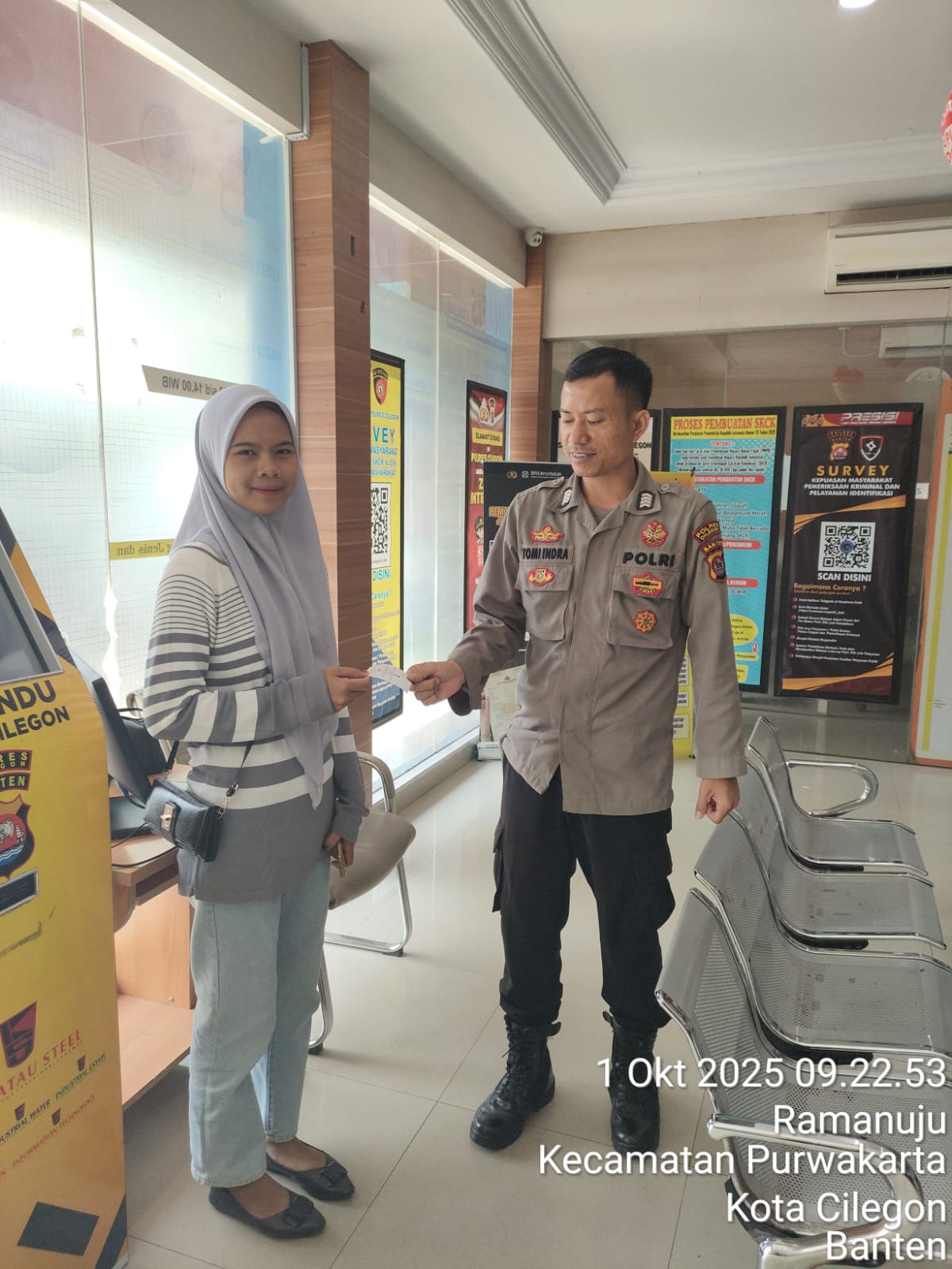 Banit SPKT Memberikan PenyuluhanKepada Masyarakat Terkait Mekanisme dan Persyaratan Pelayanan Polres Cilegon