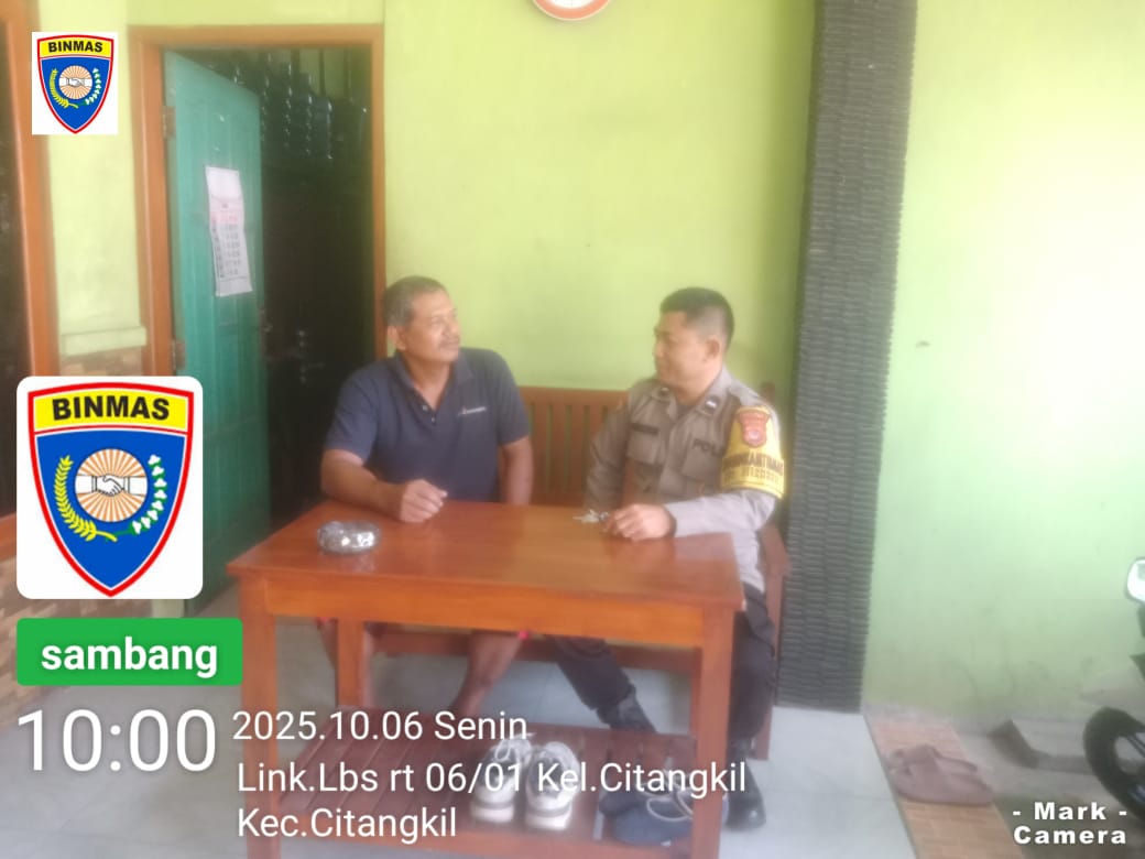 Cilegon -  Bhabinkamtibmas Polsek Ciwandan Polres Cilegon Polda Banten Melalui Sambang Dialogis menjaga kamtibmas selalu kondusif dan aman serta untuk mengetahui situasi dan kondisi terkini yang ada di Daerah binaannya,Sekaligus sebagai sarana silaturahmi dengan berbagai elemen yang ada di masyarakat, Senin (06/10/2025).