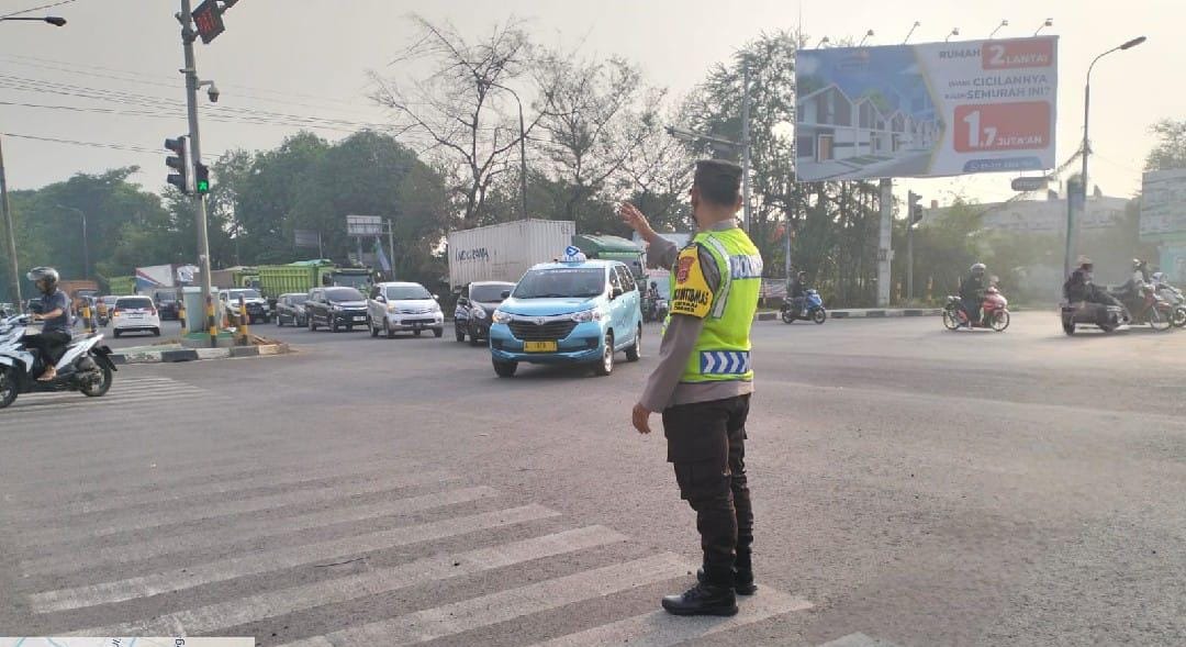 Cilegon - Pelayanan Kepada Warga Masyarakat dan Guna menciptakan situasi lalu lintas yang aman, tertib dan lancar, Personel Polsek Cibeber Polres Cilegon Polda Banten secara rutin melaksanakan pengaturan lalu lintas di sekitar Traffic Light PCI kota Cilegon.