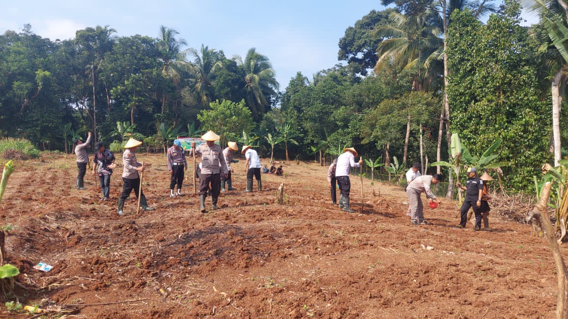 Penanaman Jagung serentak Kuartal IV Seluruh Indonesia di lahan milik kelompok tani Bpk. Maman Rt. 01/01 Kp. Macute Kel. Angsana Kec. Mancak-Serang daerah hukum Polres Cilegon.