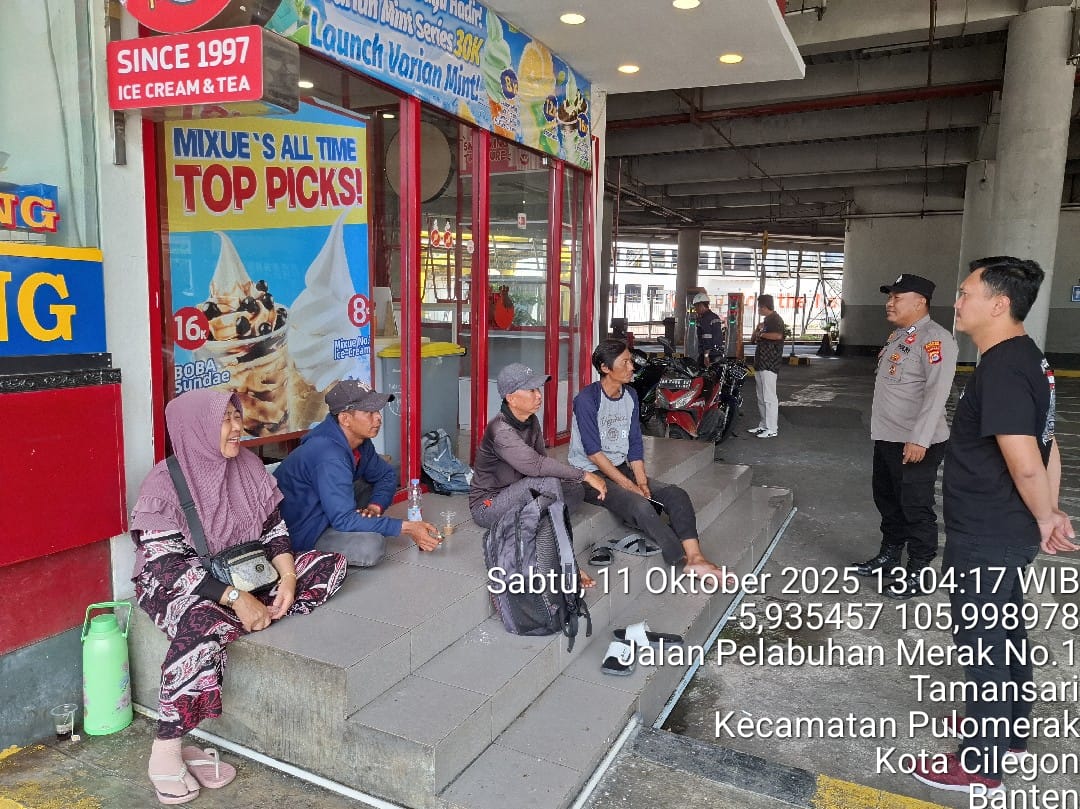 Cilegon - Personel Polsek Kskp Merak Polres Cilegon Polda Banten melaksanakan sambang dan patroli kawasan pelabuhan merak dalam rangka menjaga Harkamtibmas di Kawasan Pelabuhan Merak, Sabtu (11/10/2025).
