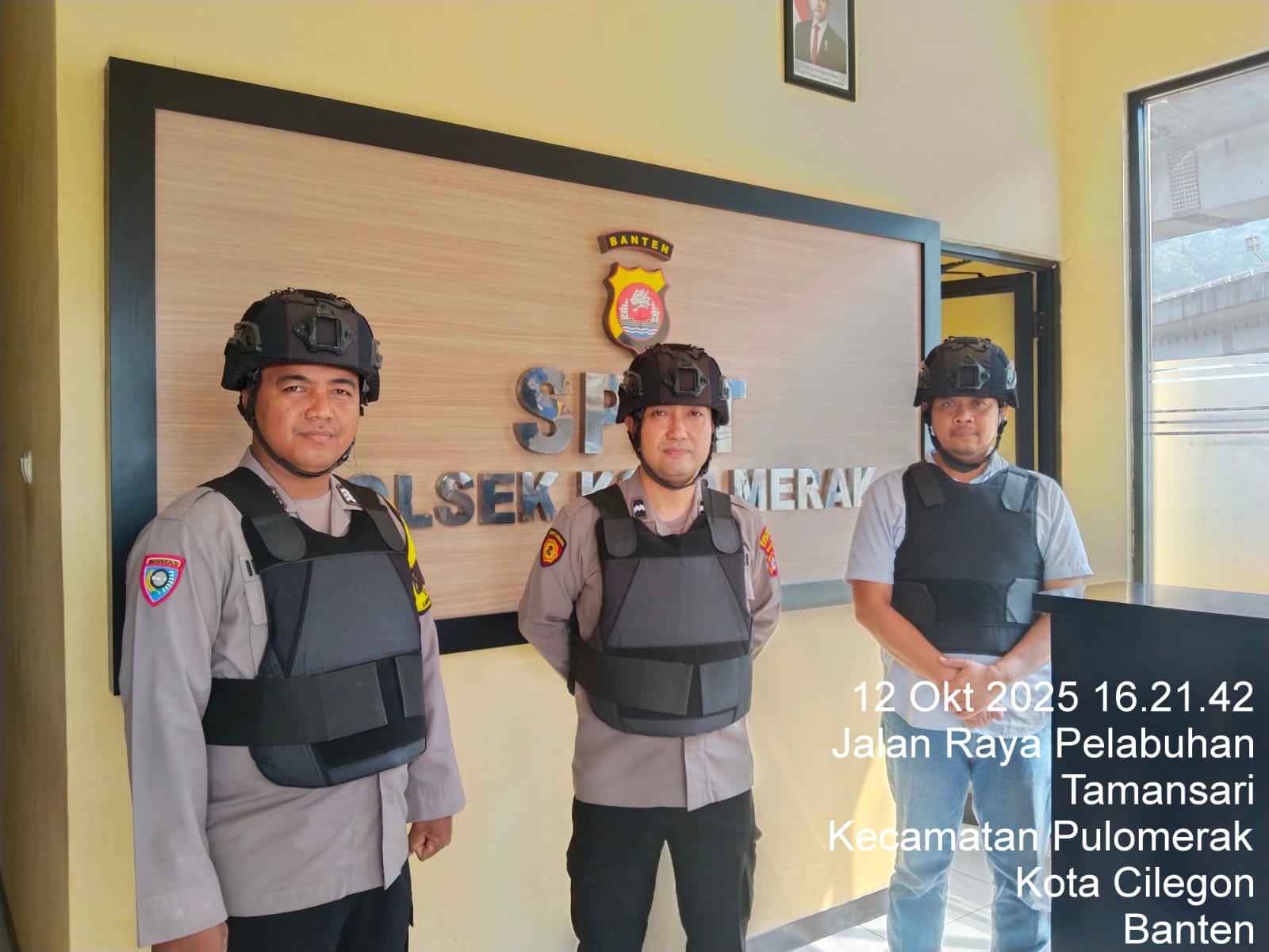 Cilegon - Personel piket jaga Polsek Kskp Merak Polres Cilgon Polda Banten melaksanakan siaga 1 Polsek pelaksanaan Sispam Mako oleh piket siaga dipimpin oleh Kspk Polsek Kskp Merak Polres Cilegon Polda Banten, Minggu (12/10/2025).