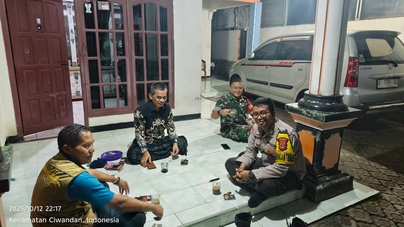 Cilegon - Bhabinkamtibmas Polsek Ciwandan Polres Cilegon Polda Banten Melaksanakan Patroli Kunjungan Malam dan terus memberikan pembinaan dan penyuluhan tentang pentingnya menjaga kamtibmas di daerah hukum Polsek Ciwandan Polres Cilegon Polda Banten, Minggu (12/10/2025).