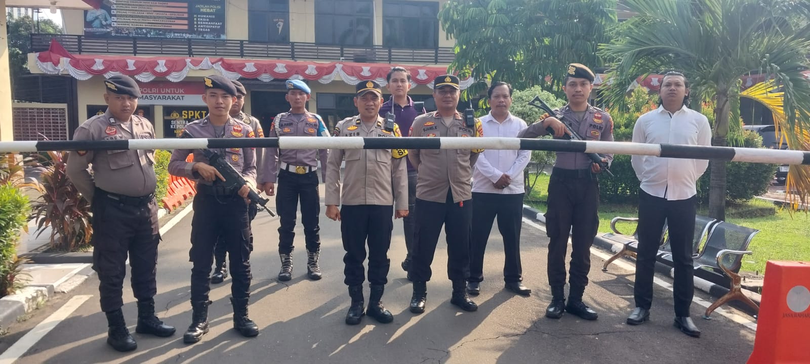 Cilegon, personel Satreskrim Polres Cilegon Polda Banten melaksanakan piket di penjagaan pintu masuk Polres Cilegon Polda Banten untuk memastikan mako Polres Cilegon dalam keadaan aman dan nyaman dalam melayani Masyarakat tanpa adanya gangguan kejahatan. Senin (13/10/2025).