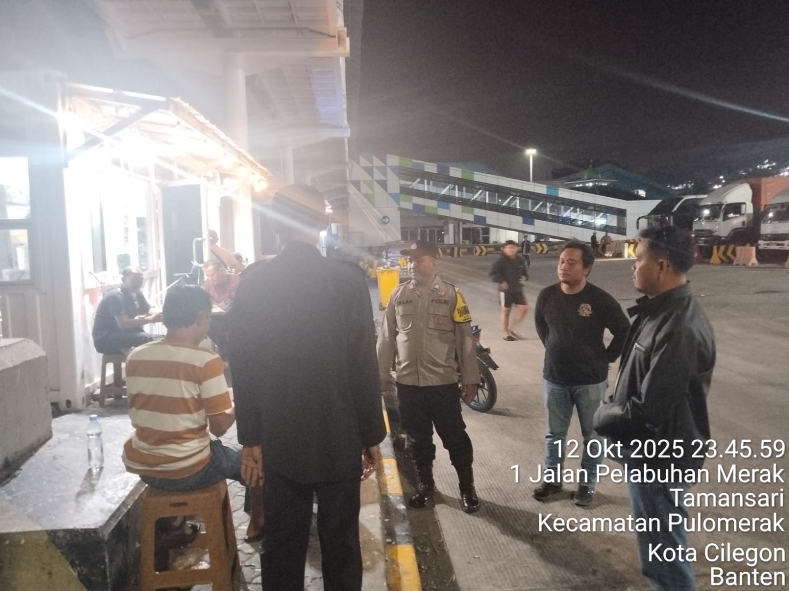 Cilegon - Personil Polsek Kskp Merak Polres Cilegon melaksanakan patroli di kawasan pelabuhan merak memberikan rasa aman dan damai, Senin (13/10/2025)