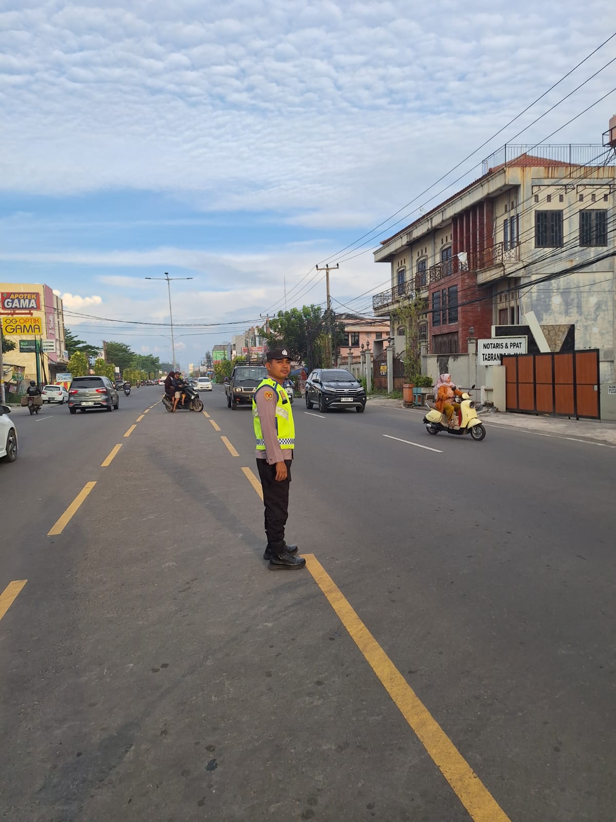 STAF LOGISTIK MELAKSANAKAN PENGATURAN LALU LINTAS DI WILAYAH HUKUM POLRES CILEGON