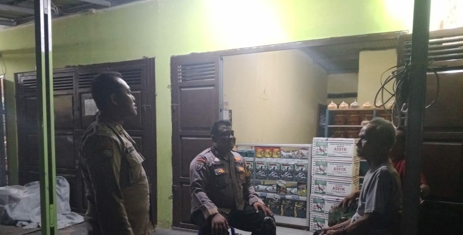 Bhabinkamtibmas menyambangi  warga  yang sedang duduk-duduk santai dan ngobrol , pada kesempatan yang baik tersebut Bhabinkamtibmas menyampaikan pesan-pesan kamtibmas dan Mengajak masyarakat untuk meningkatkan kewaspadaan serta untuk bersama-sama ikut serta menjaga keamanan lingkungan guna mencegah terjadinya gangguan kamtibmas.