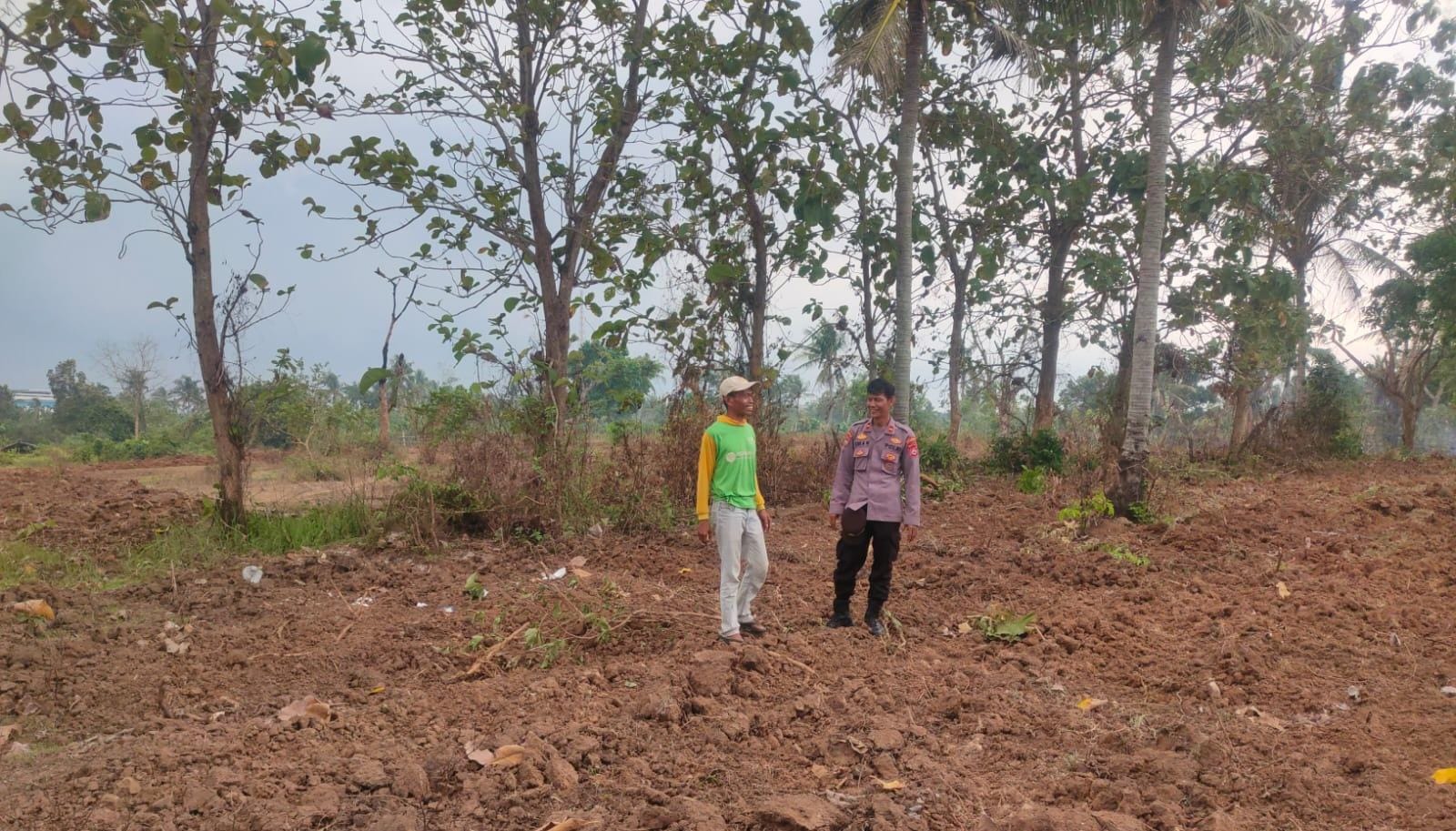 Cilegon - Polsek Anyar Polres Cilegon Polda Banten melaksanakan monitoring kegiatan pengolahan Lahan dalam kesiapan tanam jagung  di Wilayah Ds. Cikoneng Kec. Anyar Kab. Serang. Senin (13/10)