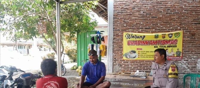 Aktif Monitoring Wilayah Sambil Ngobrol Santai Bersama Warga di Warung Kopi Bhabinkamtibmas