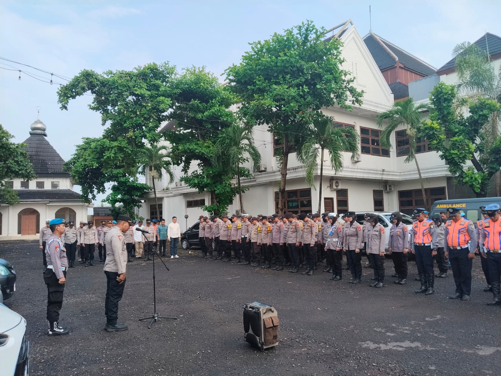 Sebelum pelaksanaan pengamanan, seluruh personel gabungan mengikuti apel kesiapan yang digelar di halaman Hotel Grand Mangku Putra, Cilegon. Apel ini bertujuan untuk memastikan kesiapan seluruh unsur pengamanan guna menciptakan situasi yang aman, tertib, dan kondusif selama berlangsungnya aksi.